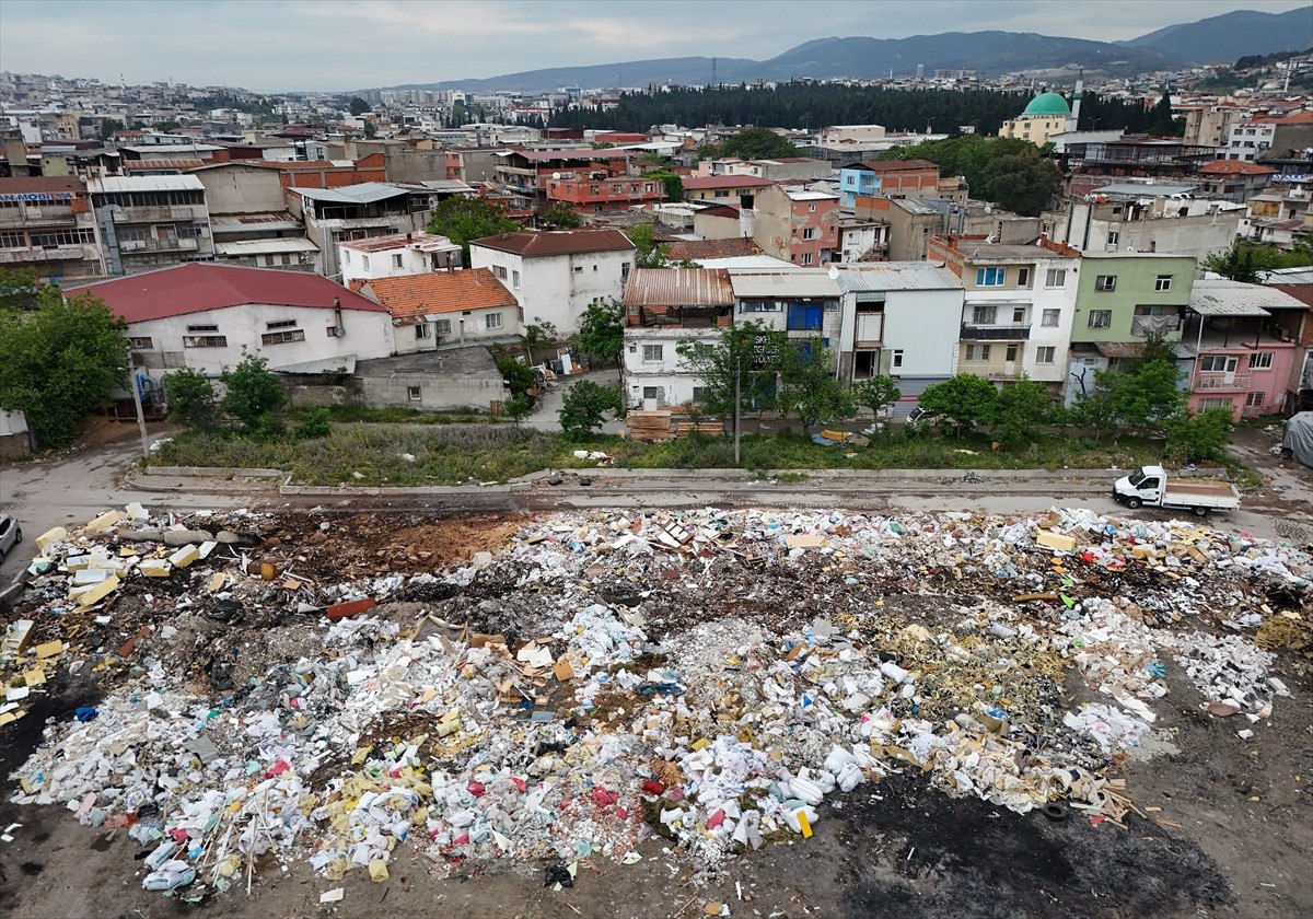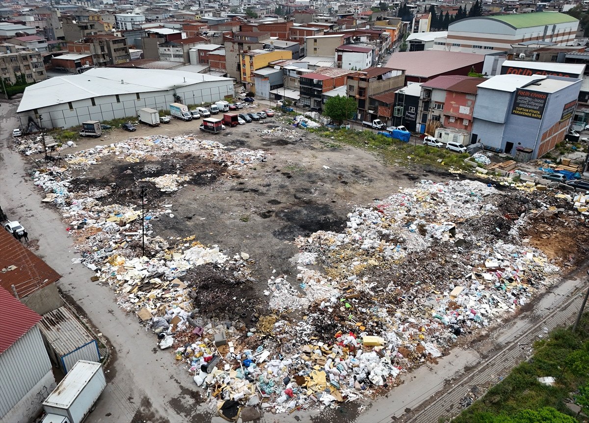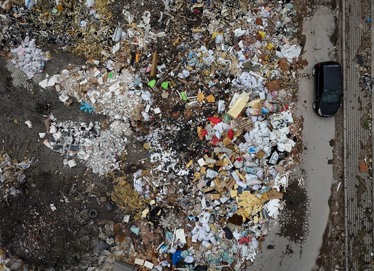 Seyhan Mahallesi 718 Sokak’ta futbol sahası büyüklüğündeki alanda, atılan plastik, tekstil ürünleri ve moloz nedeniyle atık yığını oluştu.