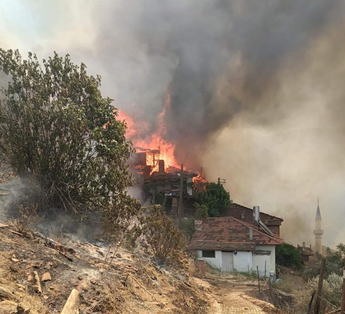Yangının ulaştığı Suçıktı Mahallesi’nde, evinde yalnız yaşayan 81 yaşındaki yatalak İbrahim Erkan hayatını kaybetti. AFAD Başkanı Ali Hamza Pehlivan ise yangın bölgesinde incelemelerde bulundu.