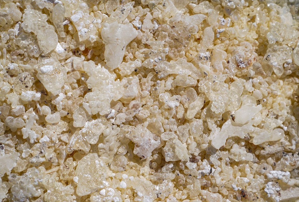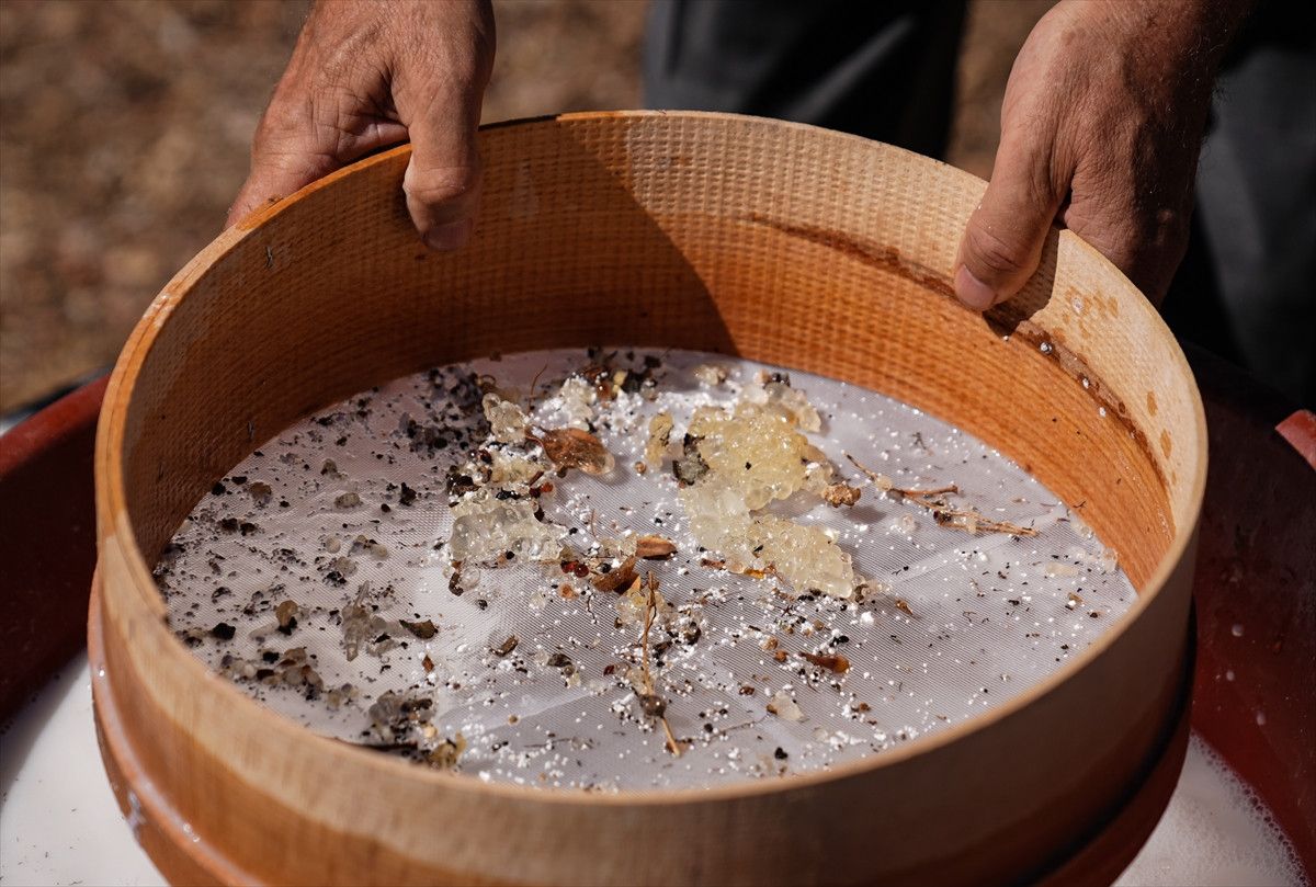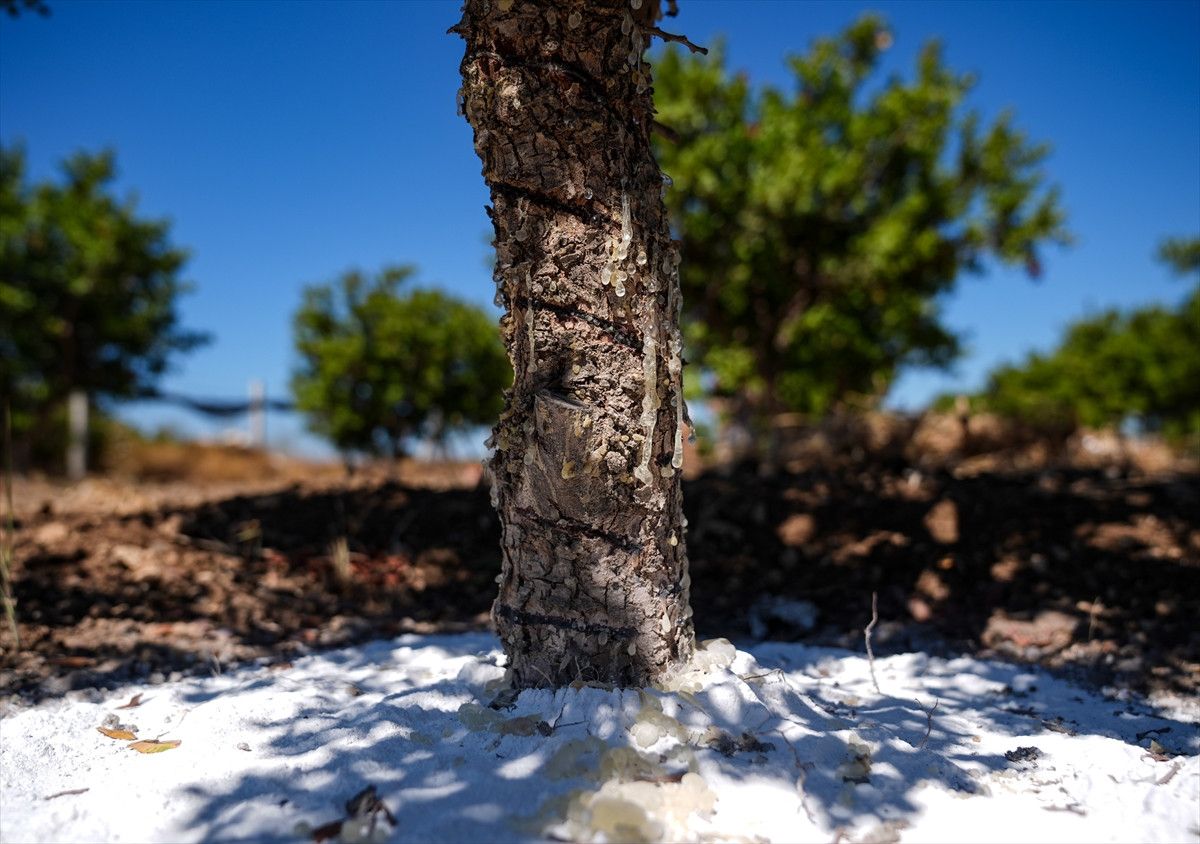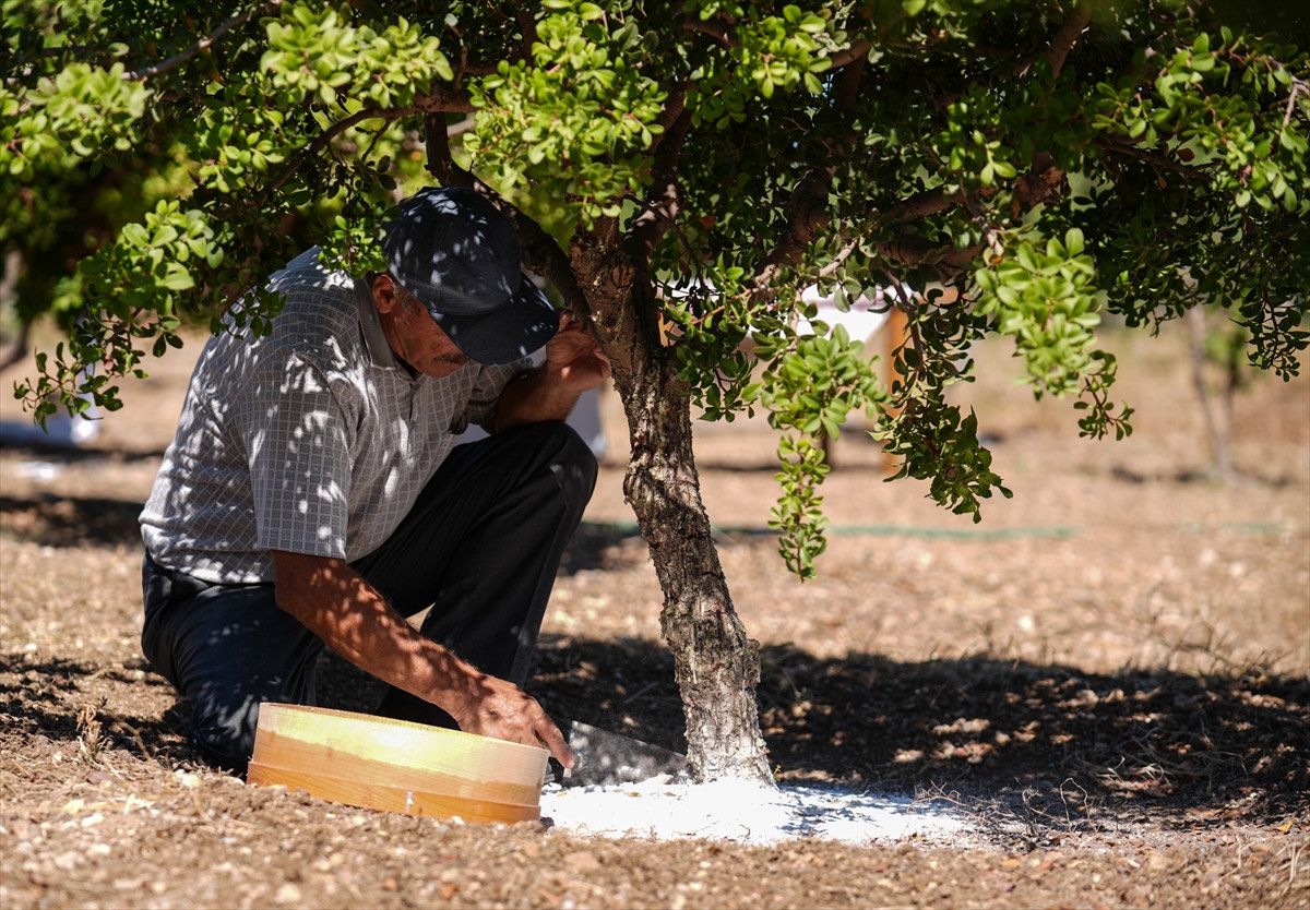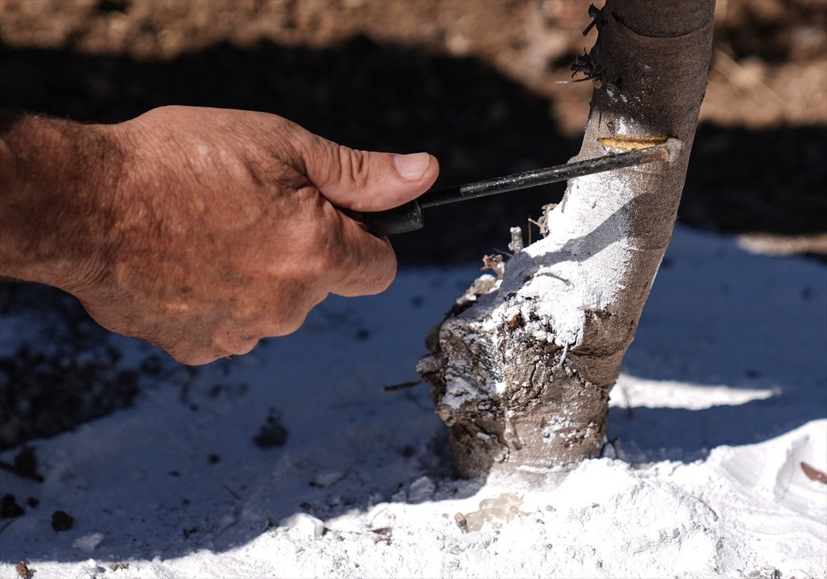 Ağaçtaki damla sakızı, çeşitli işlemlerle hasat ediliyor.