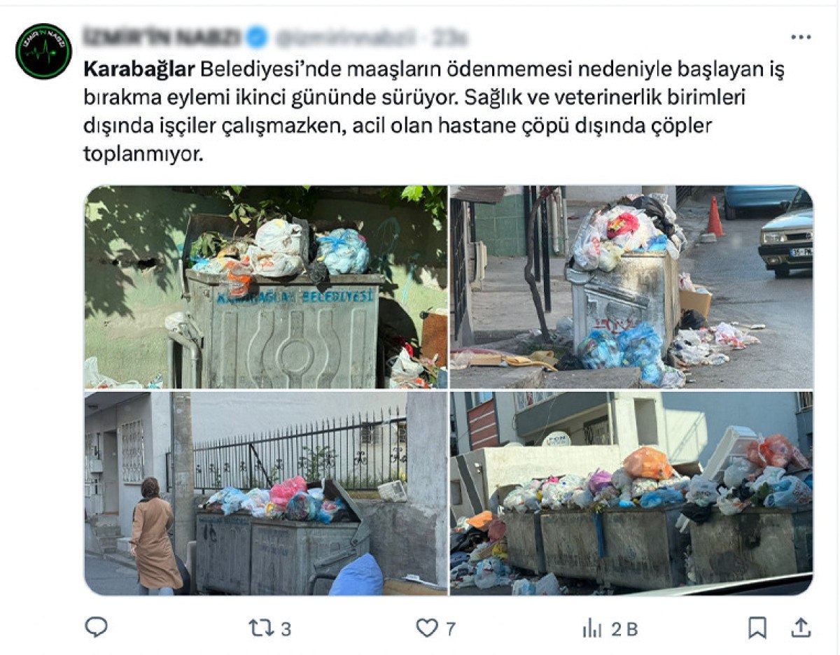 Mahallelerinde oluşan çöp yığınlarını X hesabı üzerinden yayınlayan İzmirliler, belediyeden herhangi bir karşılık göremedi.