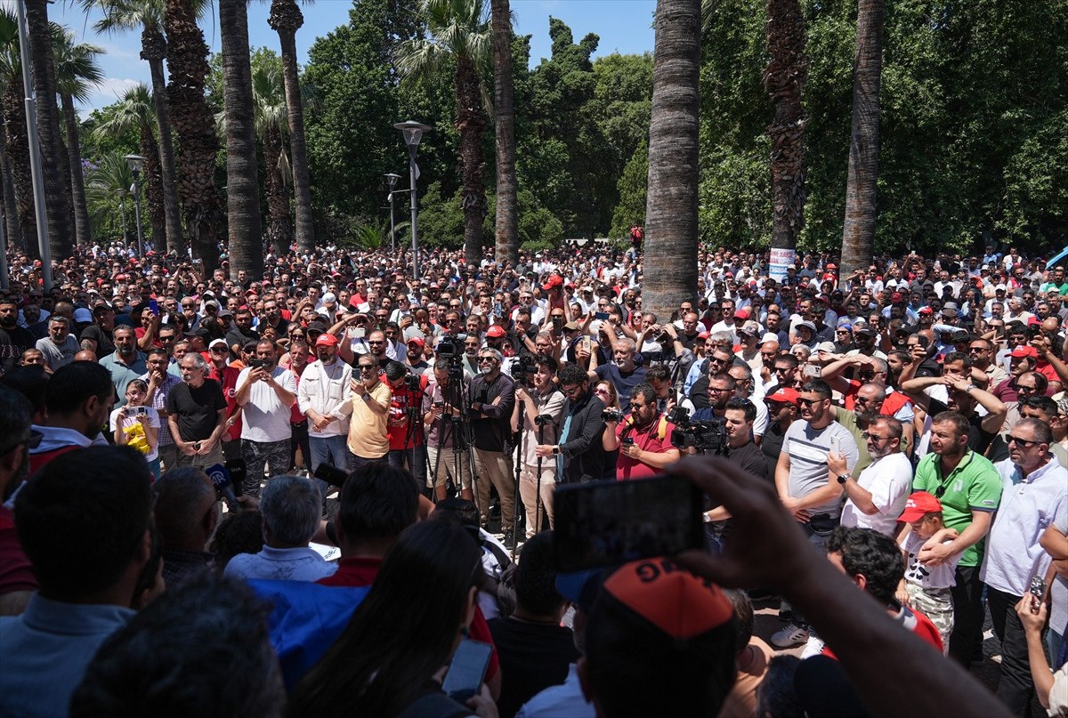 İzmir adeta bir kaosa sürüklenirken, “İş, ekmek, adalet”, “Sadaka değil toplu sözleşme”, “Açlıktan ölmeyiz, biz bu yoldan dönmeyiz” sloganları atan işçiler, sokaklarda halay çekti.