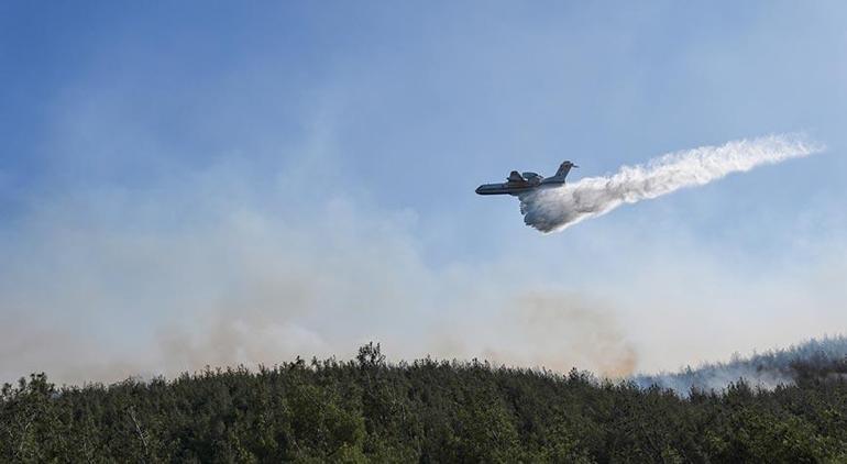 Yangına ekiplerin havadan ve karadan müdahale ettiğini belirten Elban, “Bu süreçte 7 uçak, 14 helikopter, 24 arazöz, 16 su ikmal aracı ve su tankeri, 6 dozer, 2 iş makinesi, 6 TOMA ile 112 Acil Sağlık, emniyet, jandarma ve itfaiye ekipleriyle 450 personel yangını kontrol altına almak için çalışmalarını sürdürmektedir.” ifadelerini kullandı.