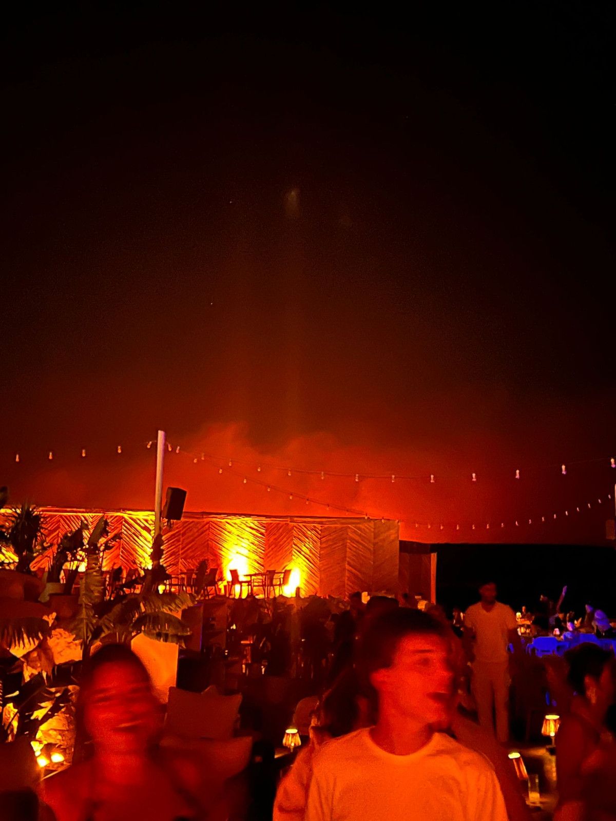 Ünlü gece kulüplerinde eğlence tam gaz devam ederken, çekilen fotoğraflarda arka planda yangının da çıkması dikkat çekti.