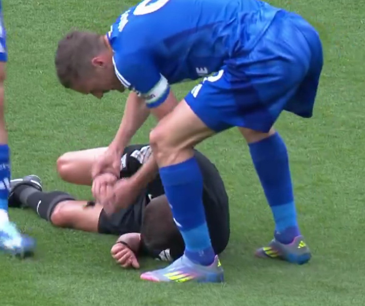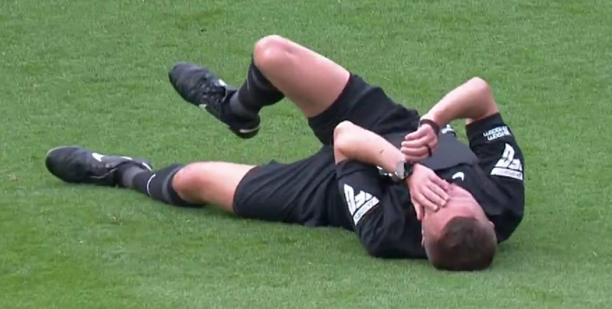 Oyunun durmasının ardından hakem Webb, tıbbi yardım gelene kadar sahada yatmaya devam etti.