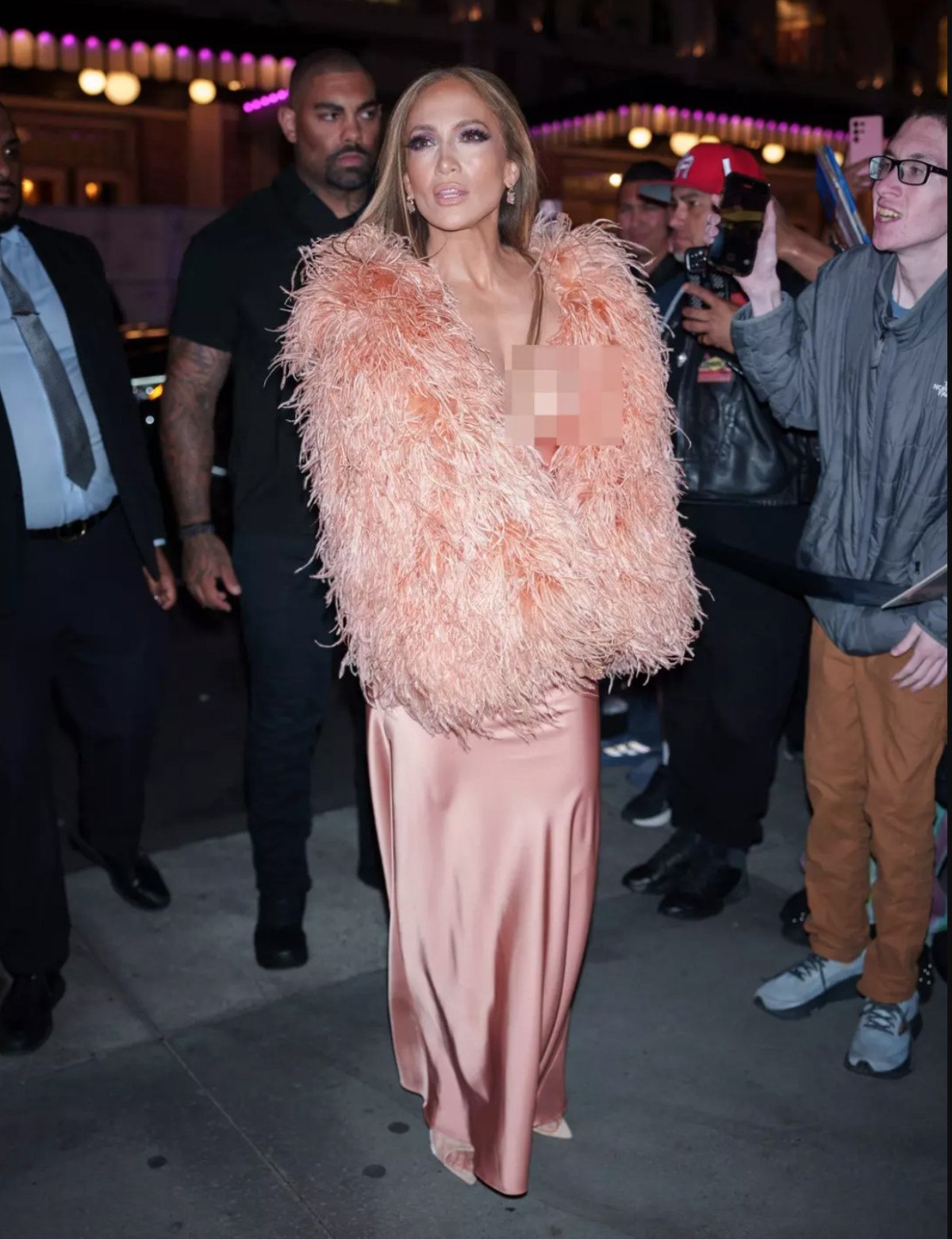 Ancak Lopez’in ilk tercihi bazı talihsiz anlara da sebep oldu. Sütyensiz seçimiyle boy gösteren JLO’nun elbisesi kayınca göğsü açıldı. Ancak Lopez, bu durumun kontrolünü kaybetmeyerek özgüvenini korudu.