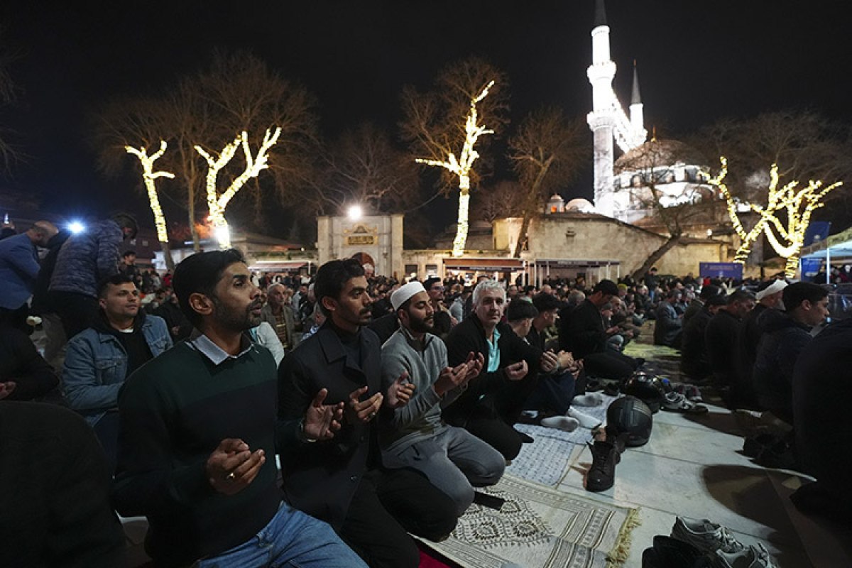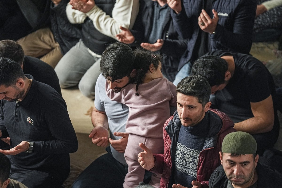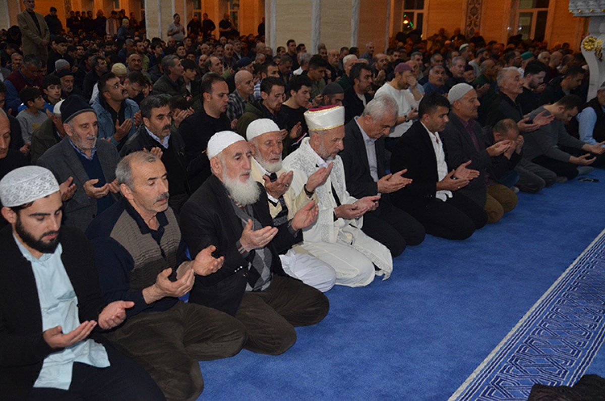 Yatsı ezanı öncesi camide Kur’an-ı Kerim okundu, dualar edildi. Genç-yaşlı, kadın-erkek binlerce kişi el açarak yapılan dualara hep birlikte “amin” dedi.