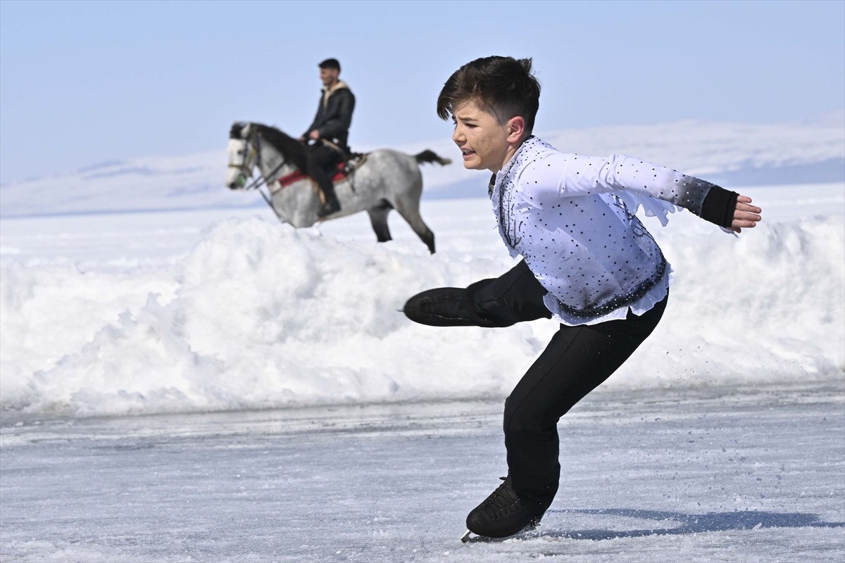 Kars ve Ardahan il sınırları içerisinde yer alan buzla kaplı Çıldır Gölü, bu kapsamda eşsiz bir gösteriye vesile oldu.