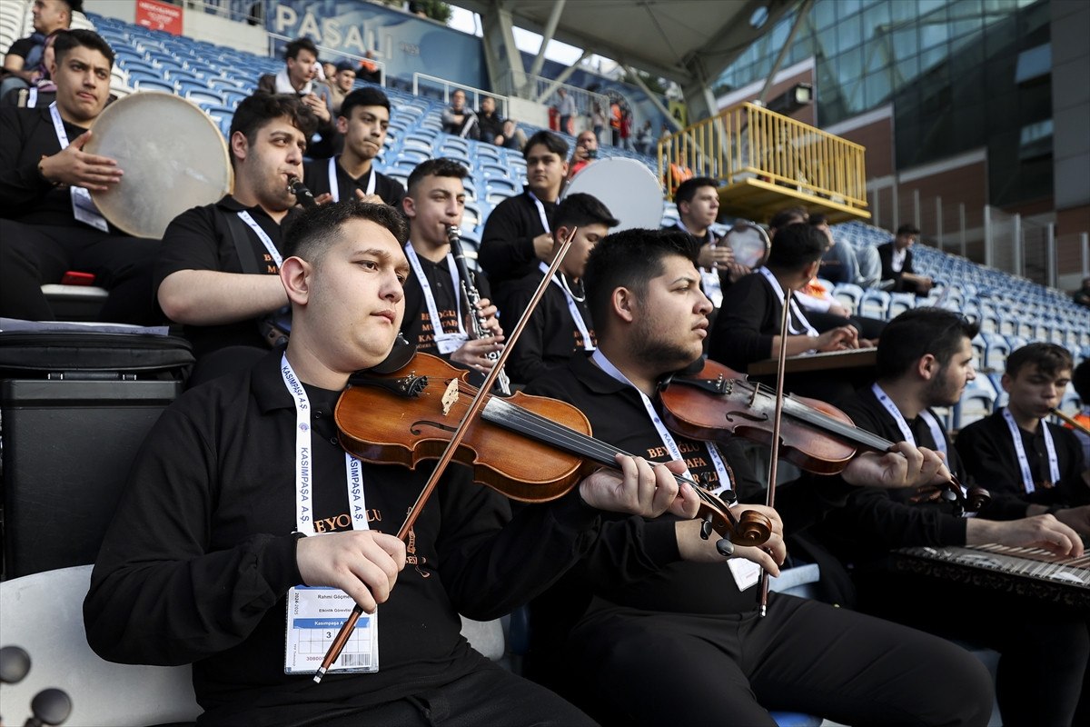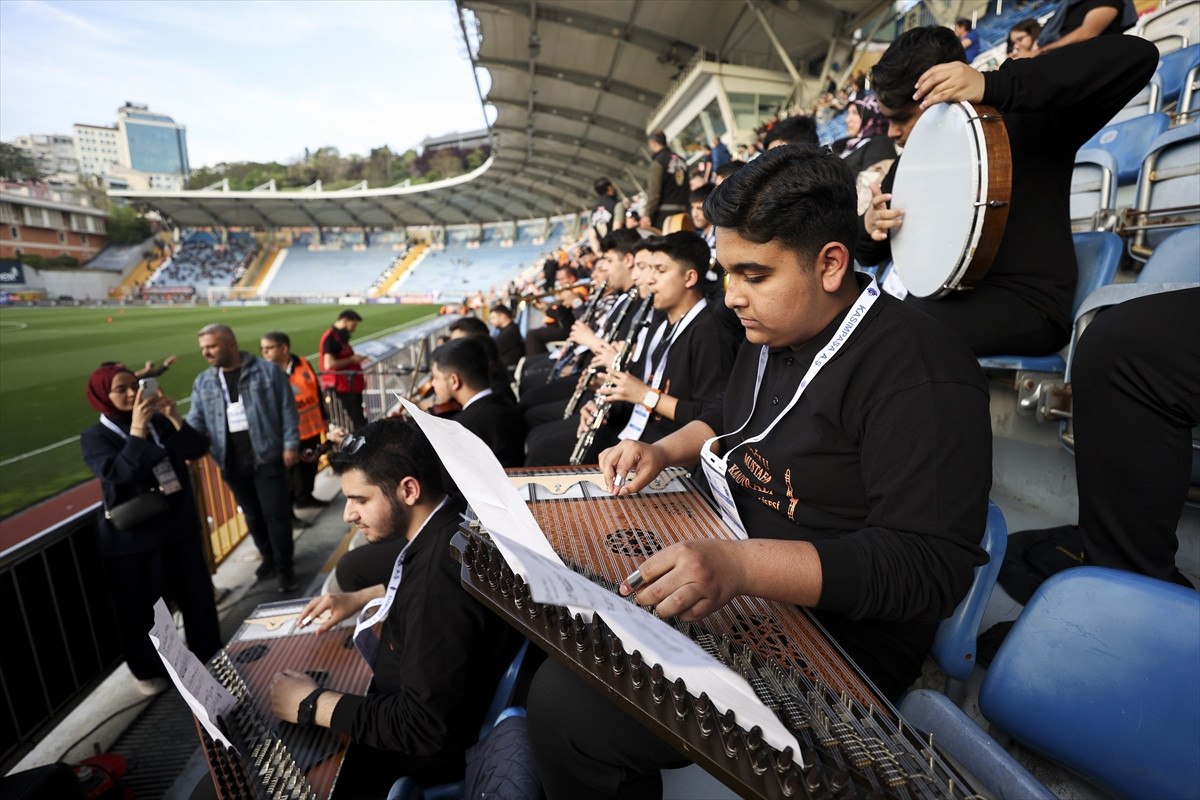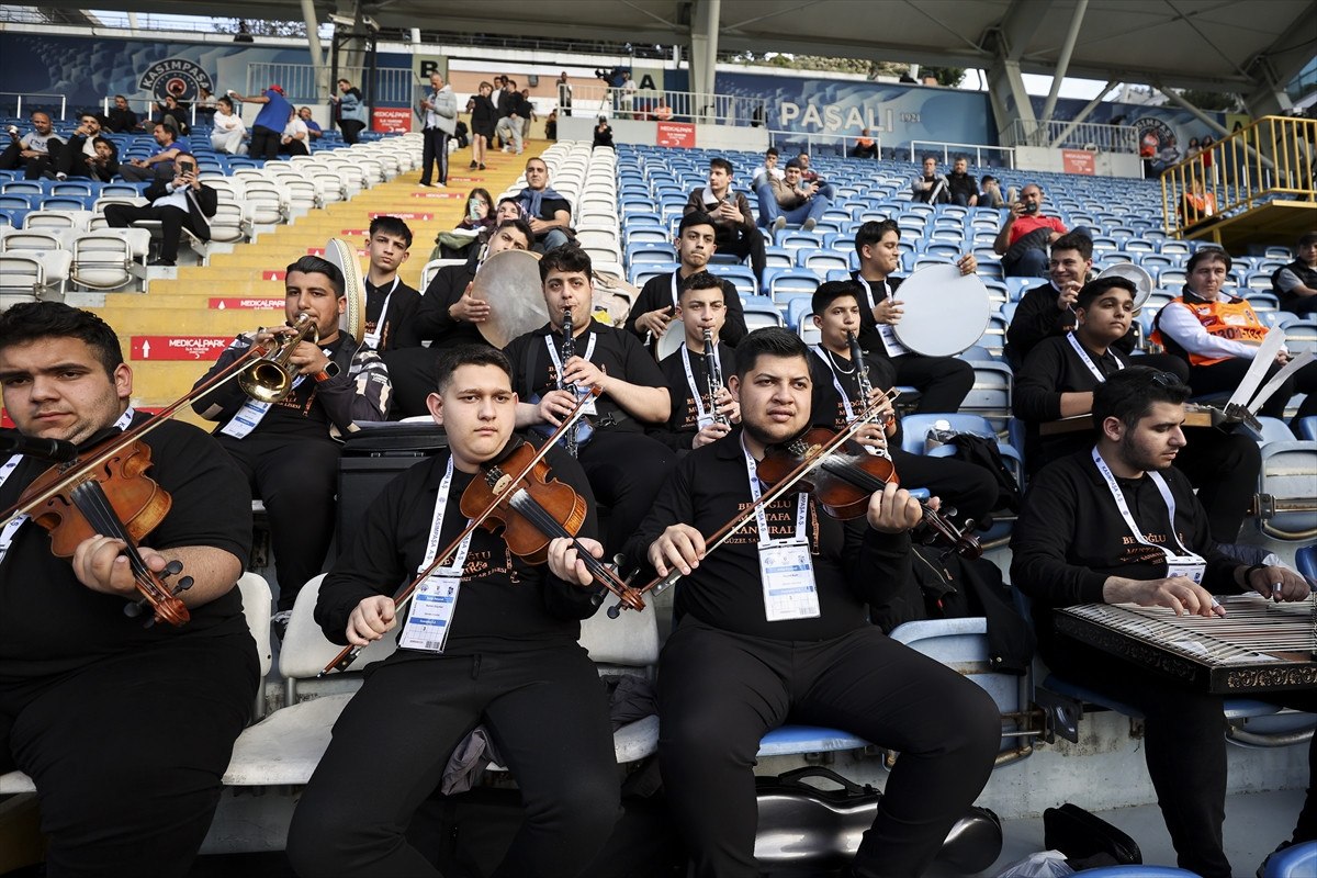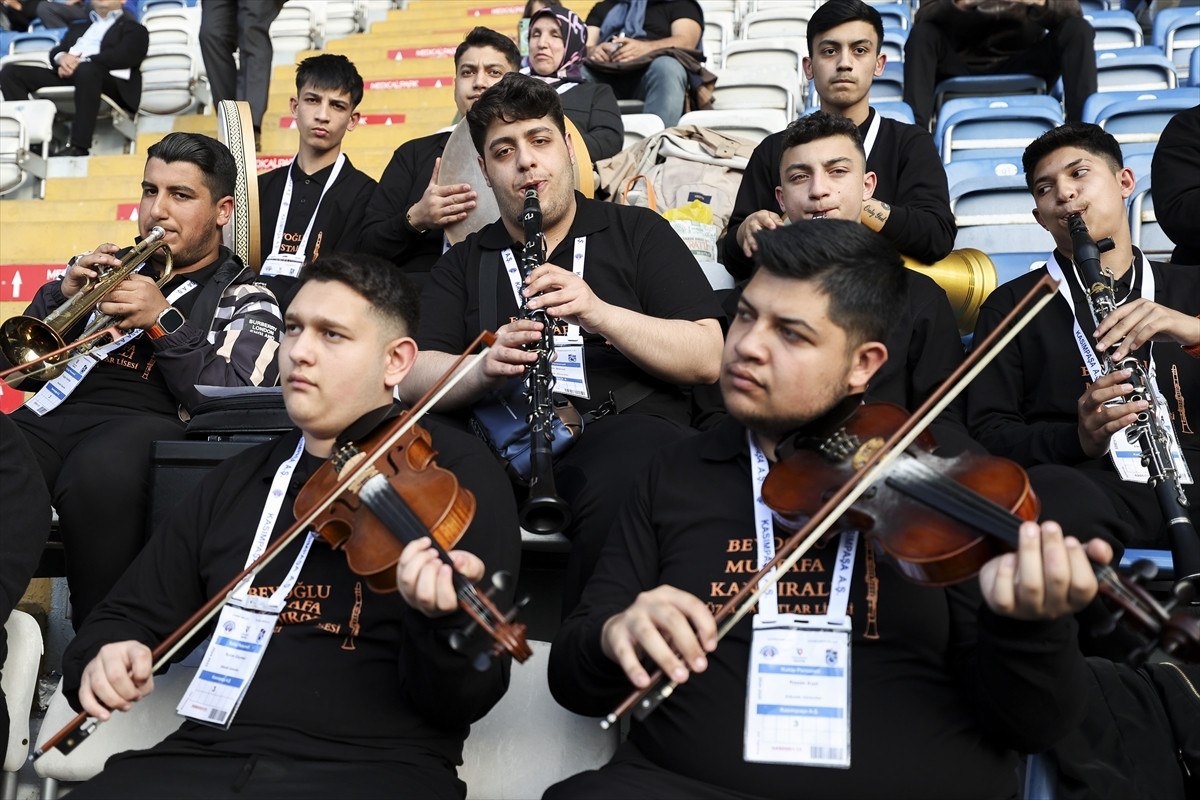 Recep Tayyip Erdoğan Stadı’nda yapılan müsabaka öncesinde Beyoğlu Mustafa Kandıralı Güzel Sanatlar Lisesi, “Sevgi ve kardeşlik için spor müzik el ele” diyerek müzik şenliği gerçekleştirdi.