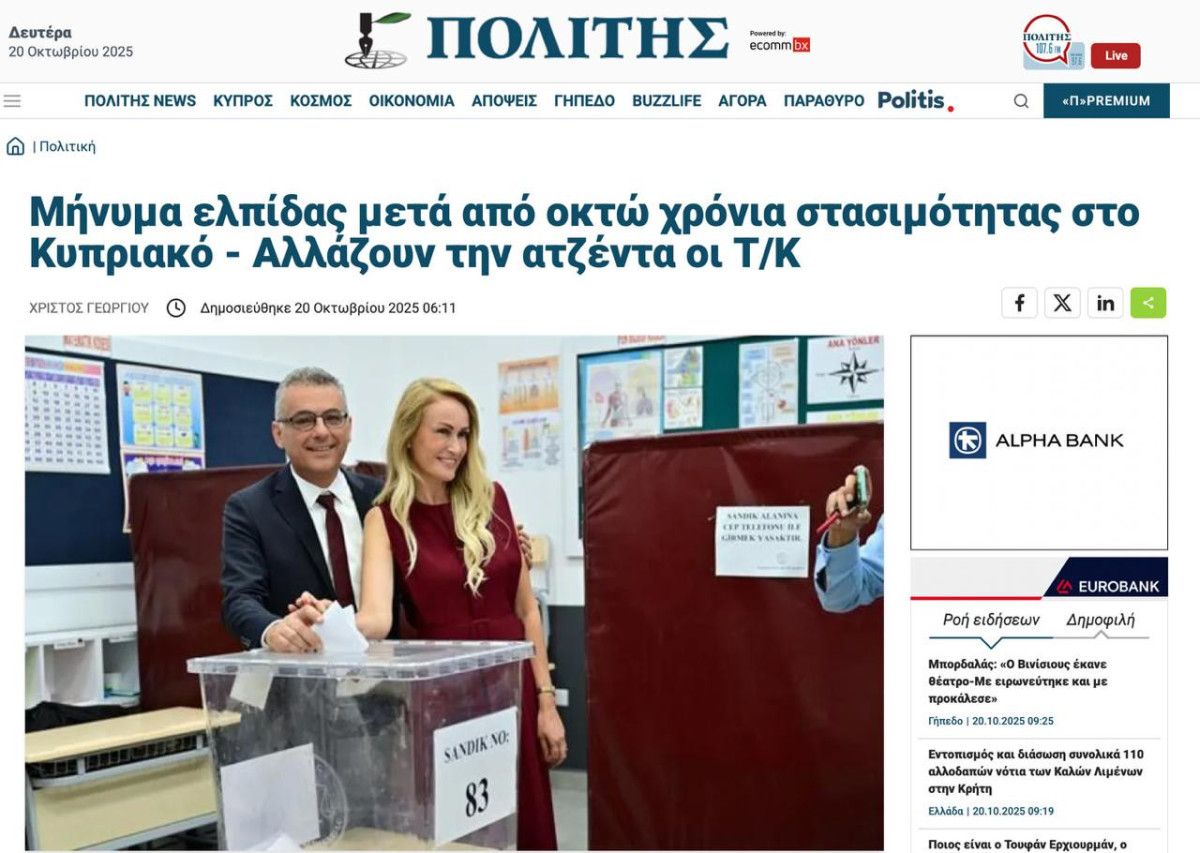 Yunanistan en büyük gazetelerinden birisi olan Kathimerini, manşetten verdiği haberde “İşgal altındaki topraklarda yapılan seçimi Kemalist aday büyük bir farkla kazandı” ifadelerine yer verildi.