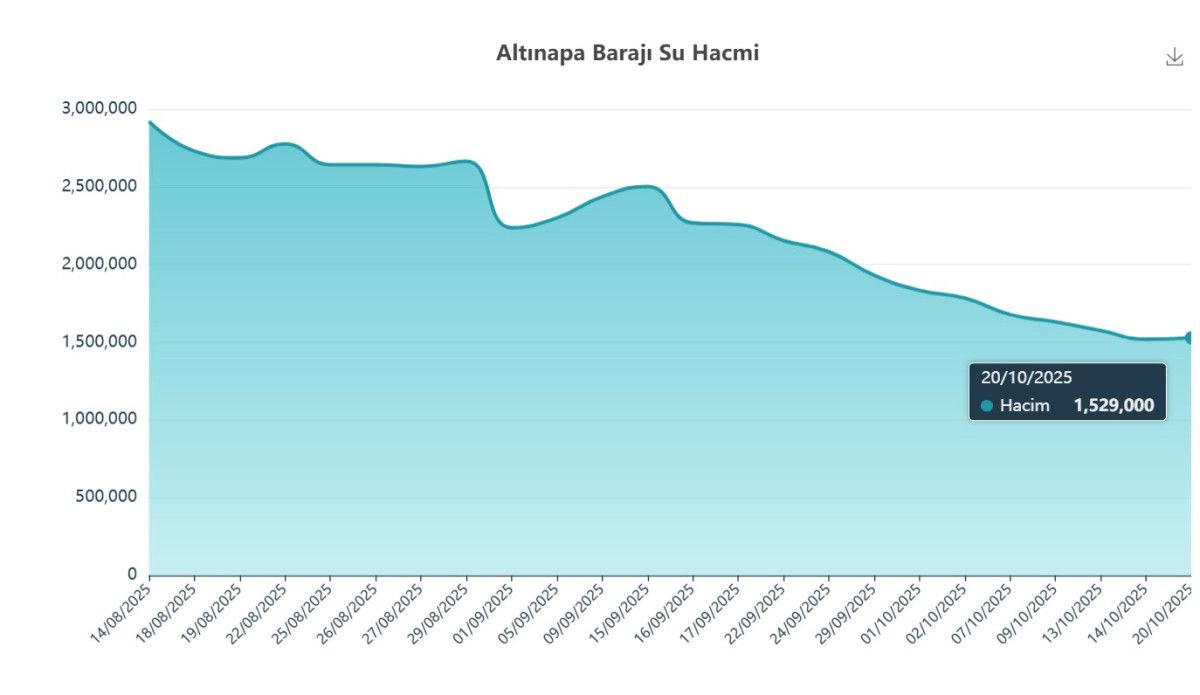Arslan, “Altınapa Barajı şu an yaklaşık 1,5 milyon metreküp. Altınapa Barajı’nın kapasitesi 30 milyon metreküp olduğu göz önüne alınırsa yüzde 5 doluluğa tekabül ediyor.