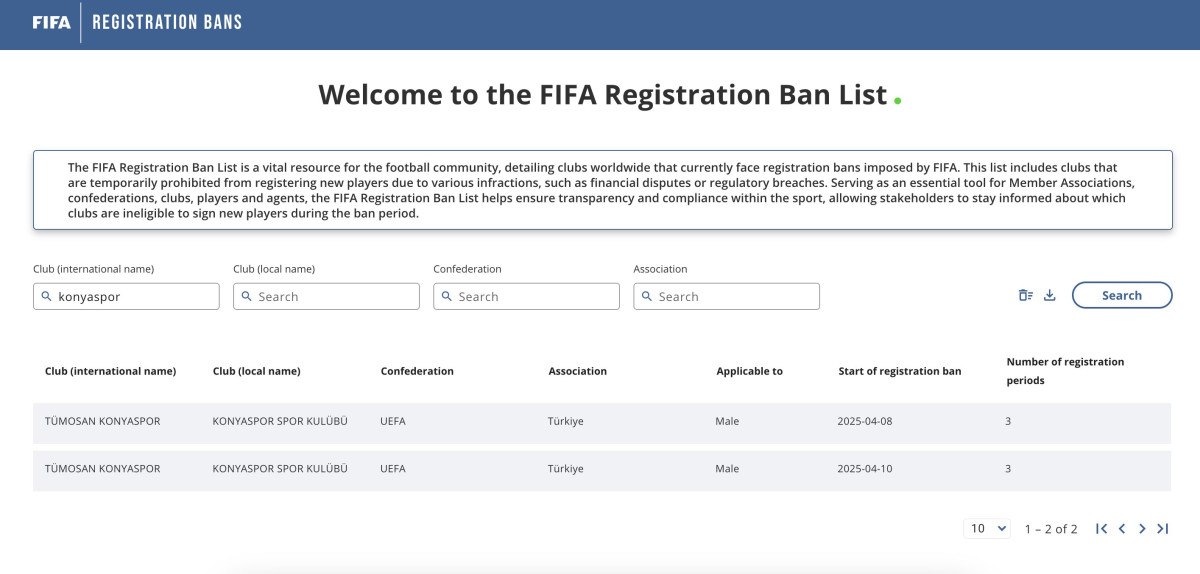 FIFA, Süper Lig kulübü Konyaspor’a 3 dönem transfer yasağı uygulama kararı aldı. Bu yasağın detayları henüz açıklanmazken, kulübün gelecekteki transfer faaliyetleri bu karar doğrultusunda kısıtlanacak. Konyaspor, önümüzdeki üç transfer dönemi boyunca oyuncu alım-satımı yapamayacak.