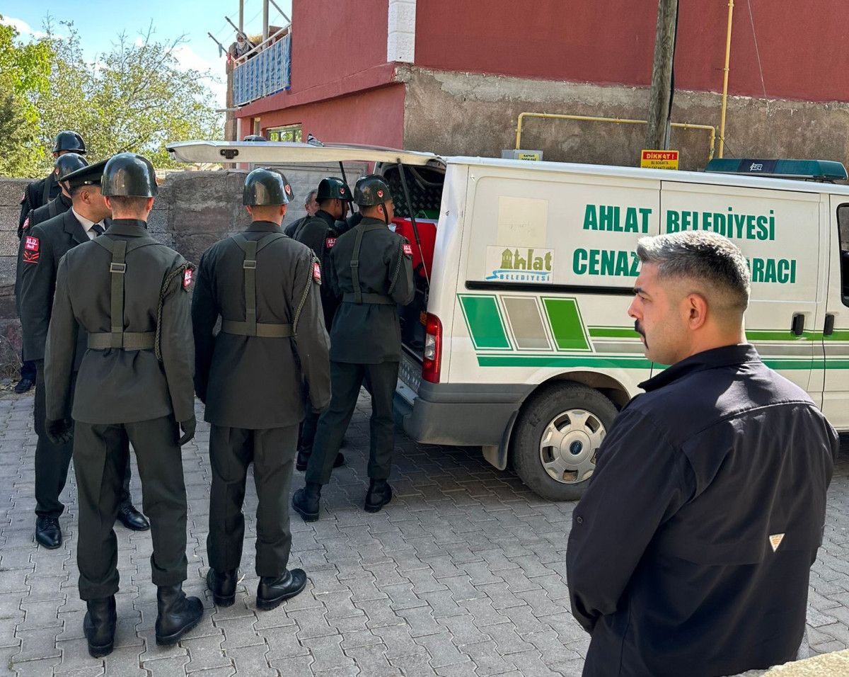 Kore Gazisi Yaşar Azap’ın Türk bayrağına sarılı cenazesi, tören için Ahlat’ın Erkizan Mahallesi’ndeki Ergezen Camisi’ne getirildi.