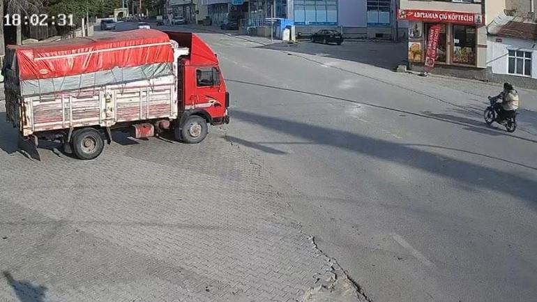 Olayın yaşandığı anlar ise güvenlik kamerası görüntülerine saniye saniye yansıdı. Görüntülerde, iki kızın motosikletle ilerlediği, bu sırada kamyonetin kasasının kapağının yan tarafından birden açılmasıyla motosiklet üzerindeki kızlara çarpması yer alıyor.