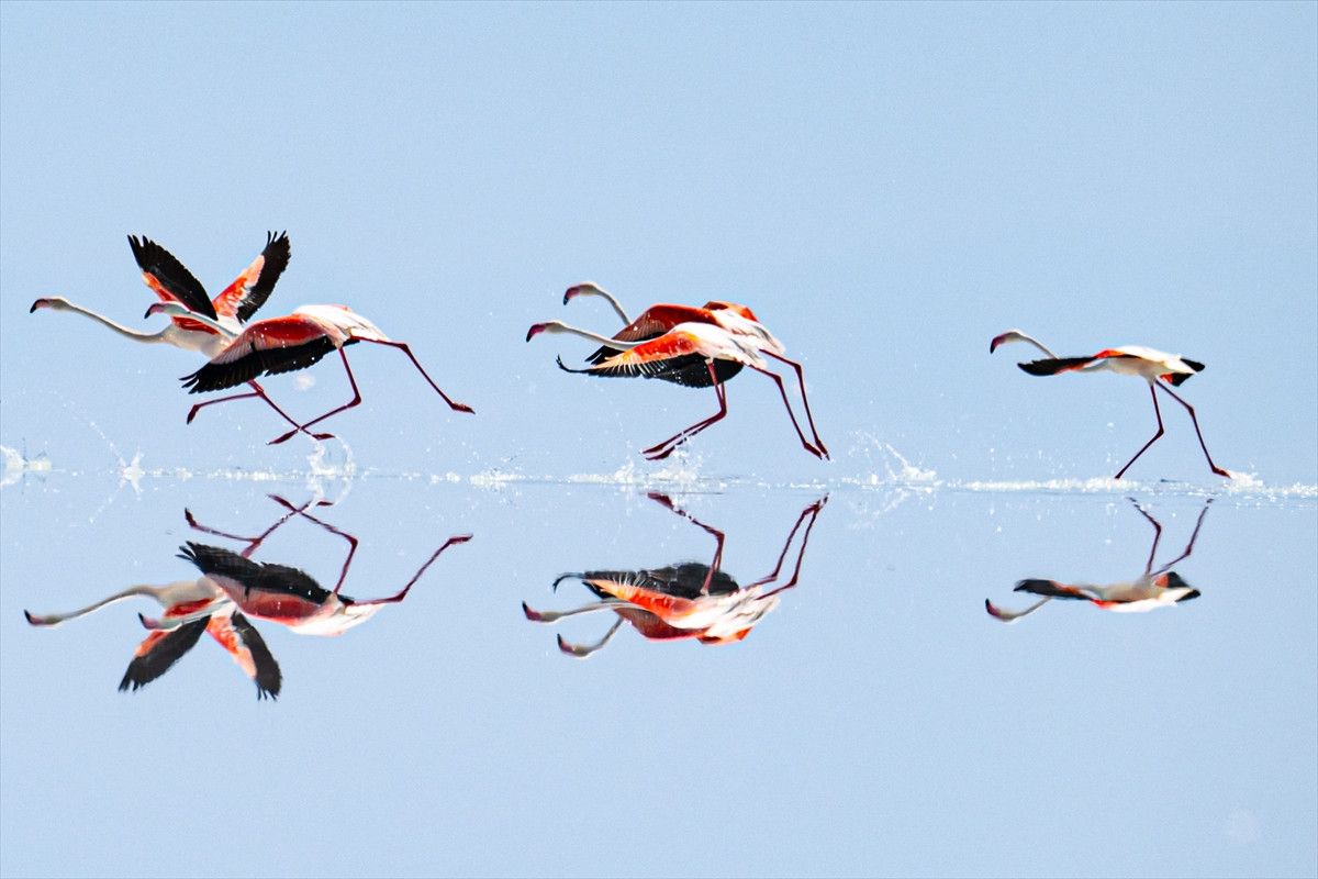 Her şeye rağmen Tuz Gölü üzerinde az sayıda kalan flamingoların görüntüsü hayran bırakıyor.