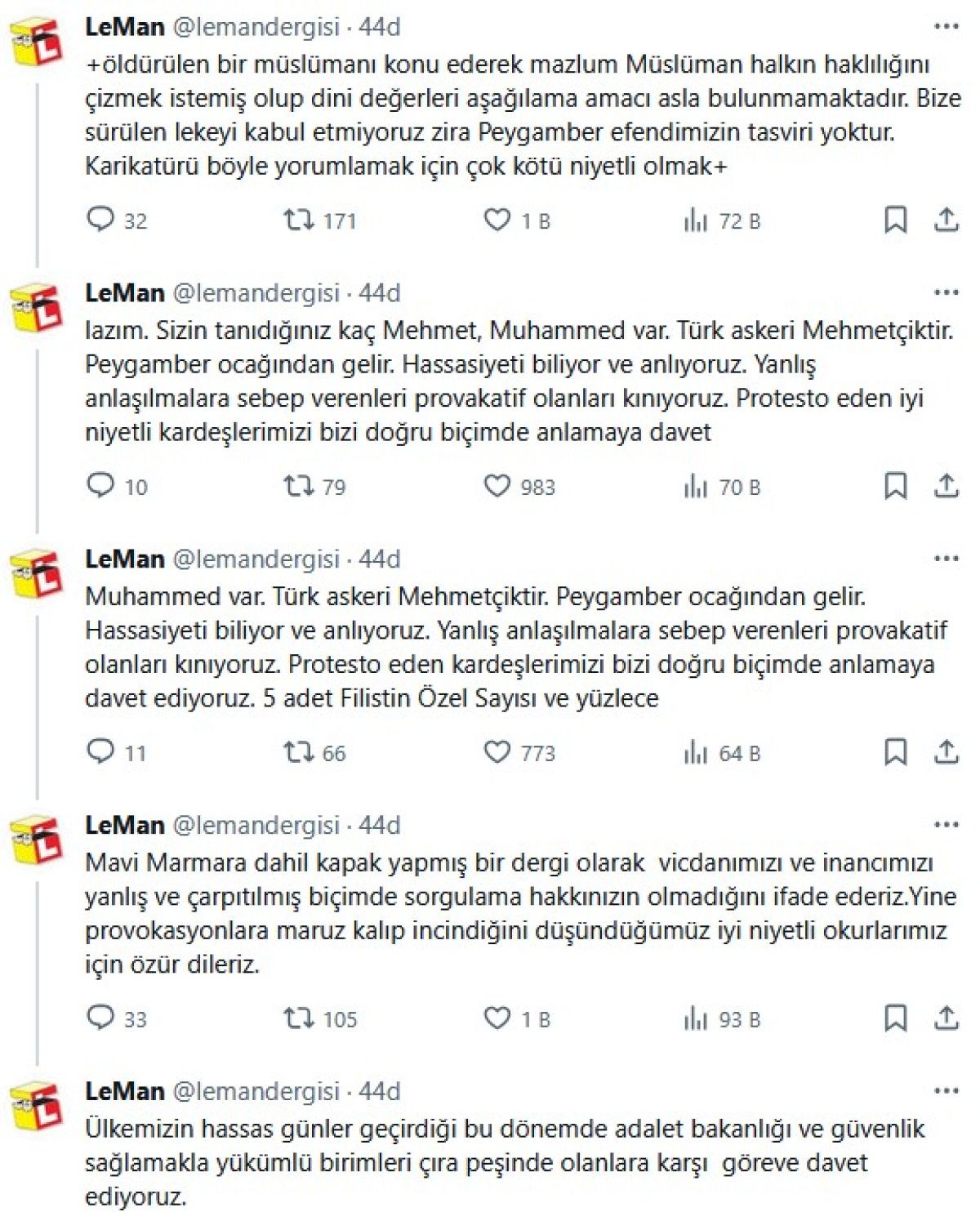 Leman dergisi, sosyal medya hesabı üzerinden kendisini savunurken, şu ifadelere yer verildi:
