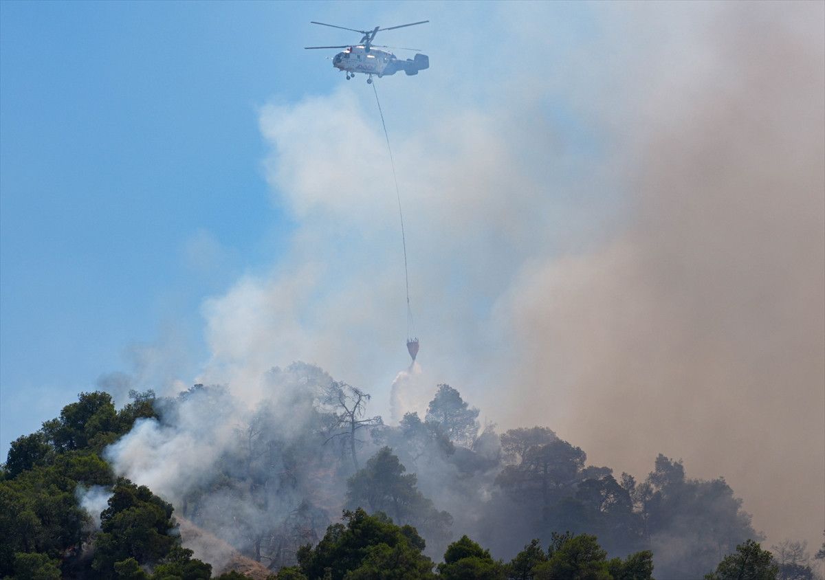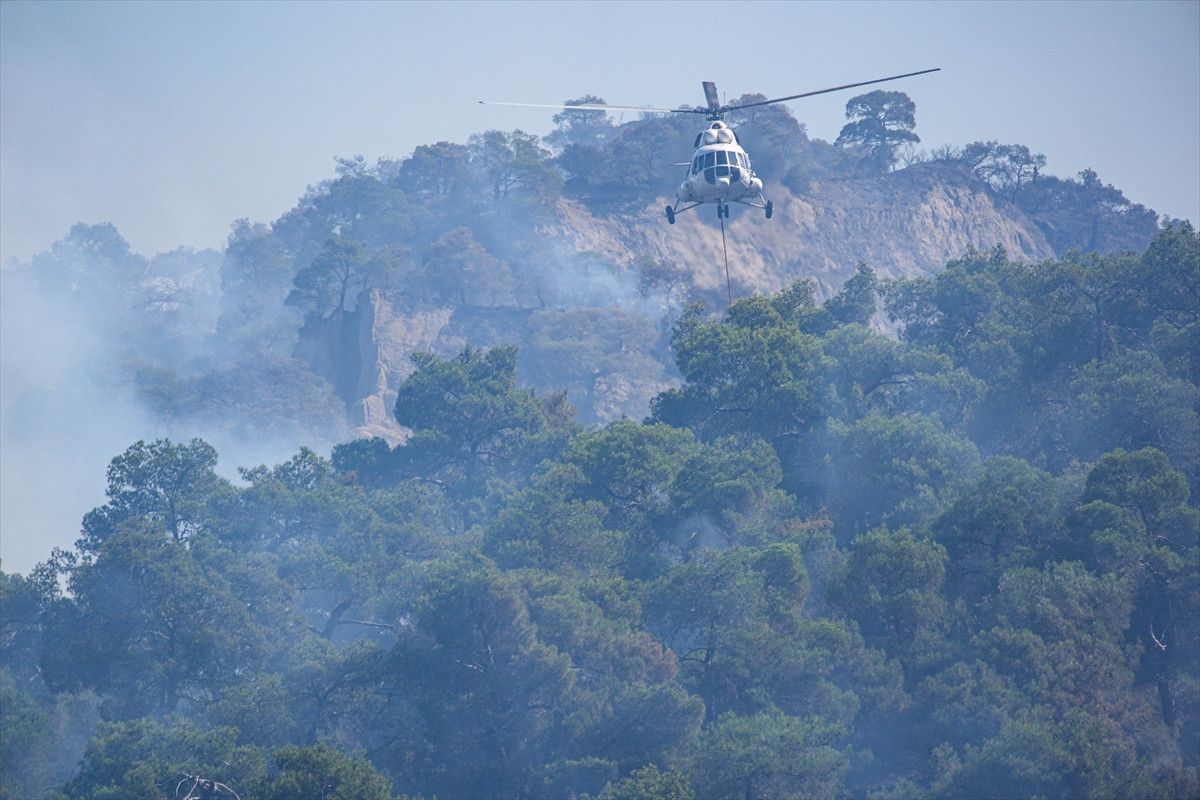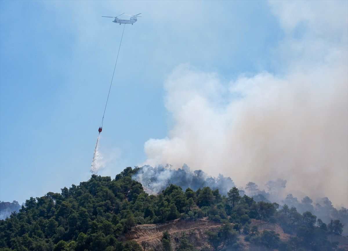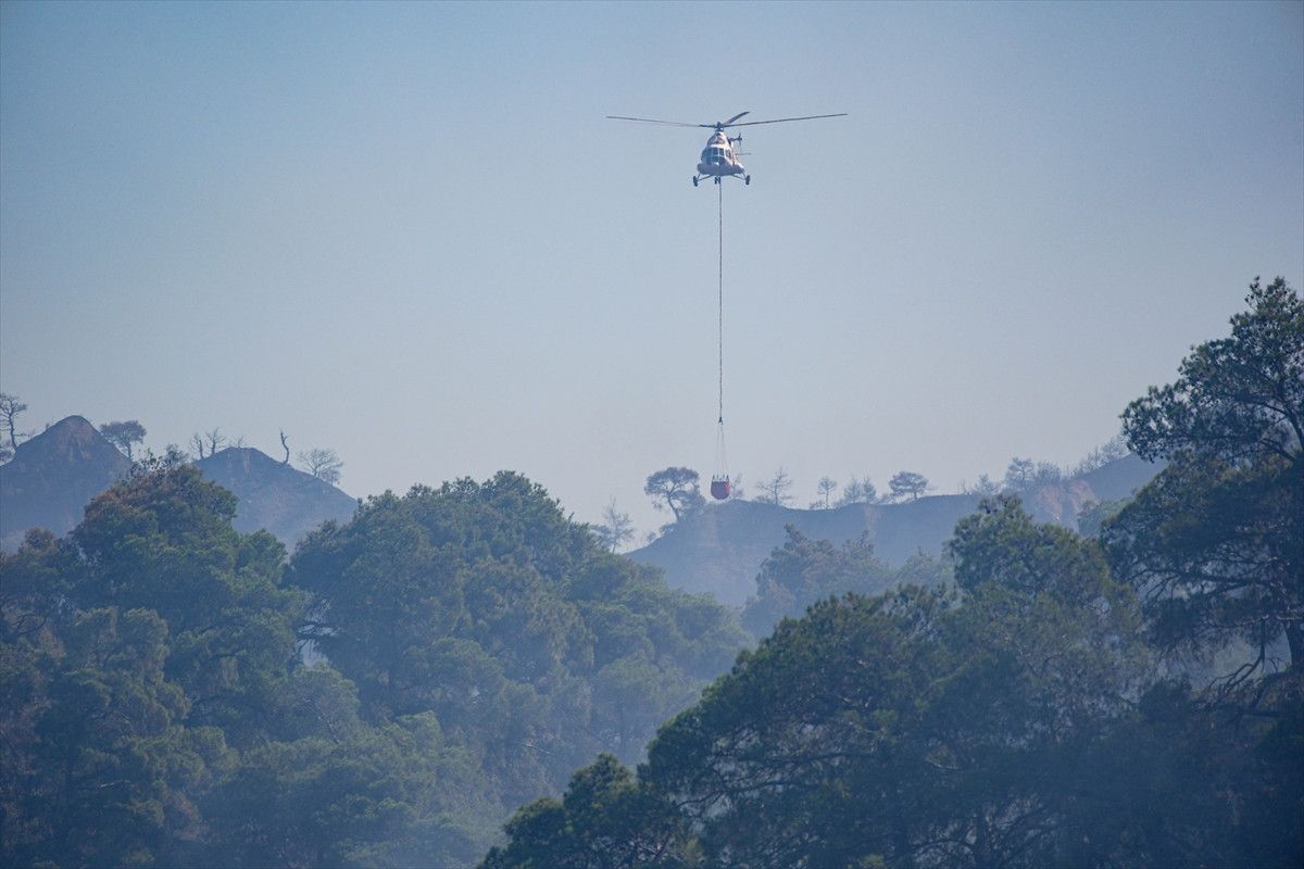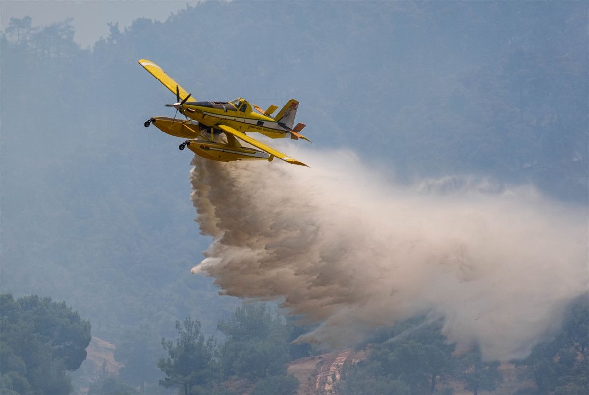 Sabah saatlerinde 5 uçak ve 7 helikopter, alevlerle mücadele çalışmalarına destek vermeye başladı.