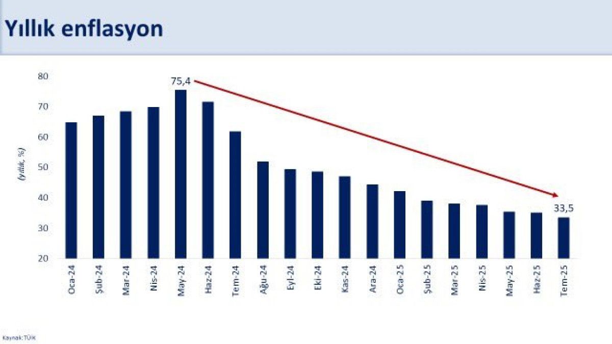 TÜİK’in verilerine göre, temmuz ayında aylık enflasyon yüzde 2.06, yıllık yüzde 33.52 olarak gerçekleşti.