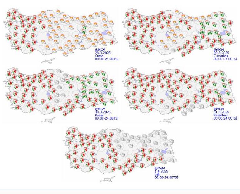 Meteoroloji Genel Müdürlüğü tarafından yapılan tahminlere göre: Bayram boyunca ülke genelinde yağışlar etkili olacak. Özellikle Pazartesi ve Salı günleri hava oldukça yağışlı ve serin geçecek. İstanbul da dahil olmak üzere birçok şehirde gök gürültülü sağanak yağış beklendiğinden, özellikle açık hava aktiviteleri için dikkatli olmakta fayda var.