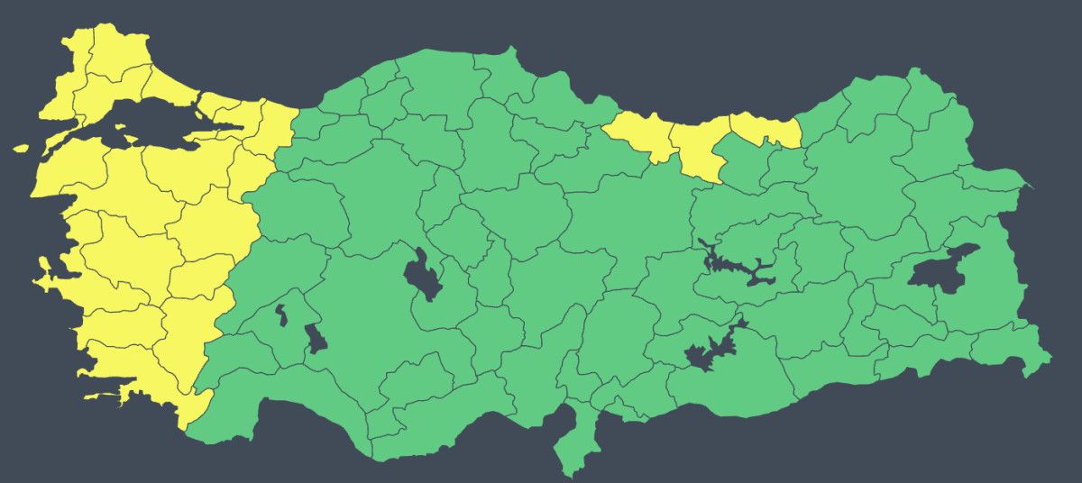Meteoroloji Genel Müdürlüğü, hava durumu nedeniyle 21 il için sarı kodlu uyarıda bulundu.