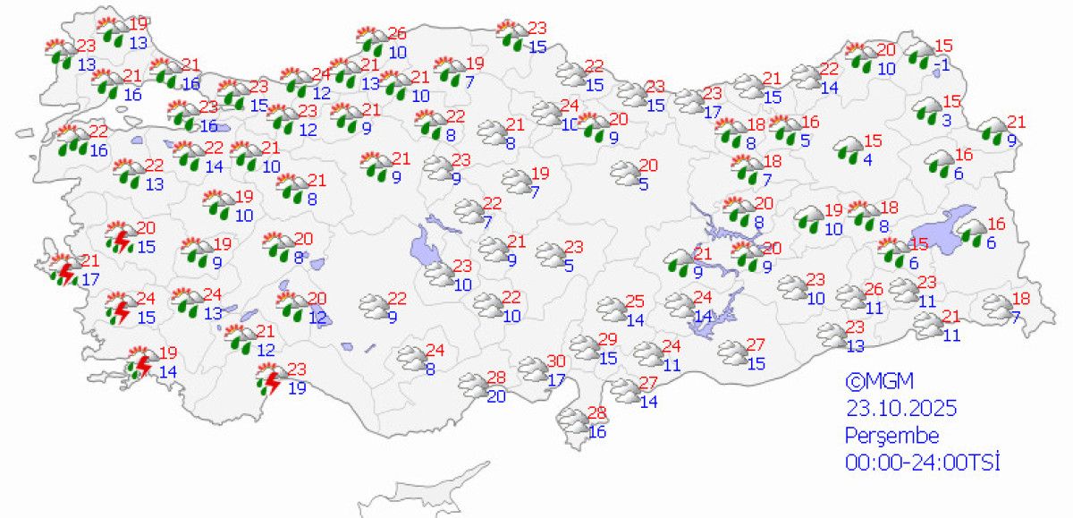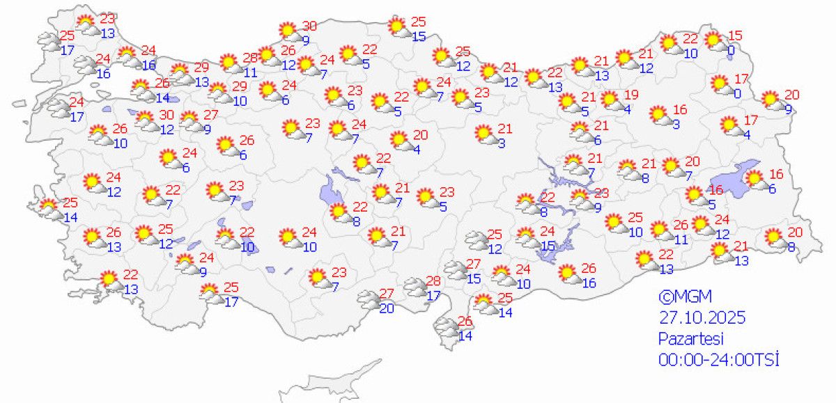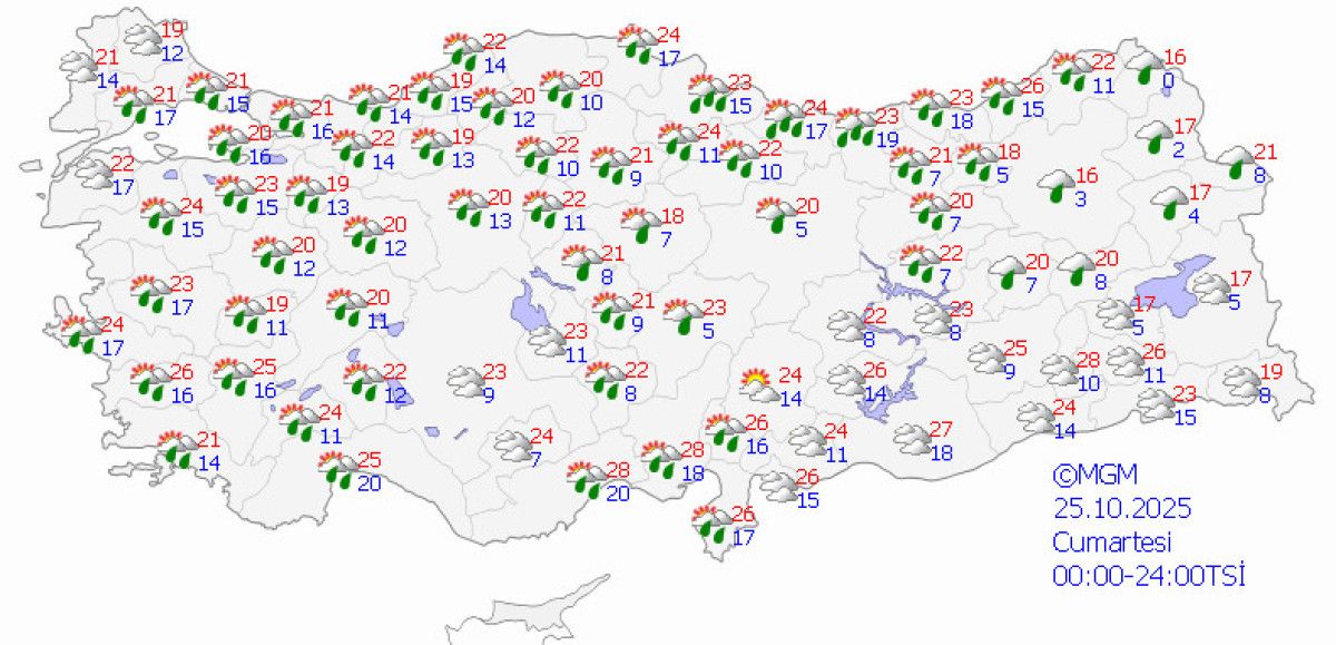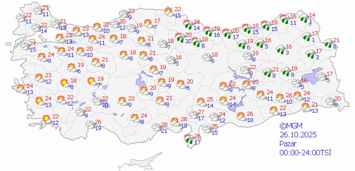Meteoroloji Genel Müdürlüğü, yeni hava durumu raporunu yayınladı.