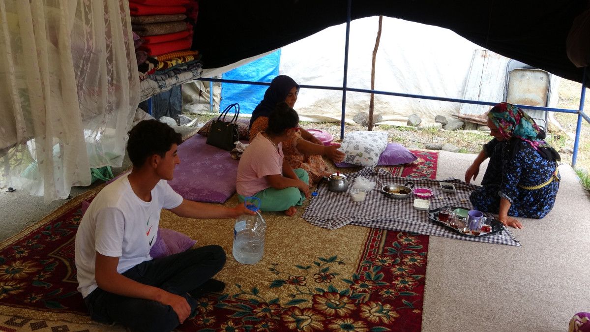 İşçiler, çadırlarını kurduktan sonra ateş yakıp sacda ekmek pişirmeye başladı.