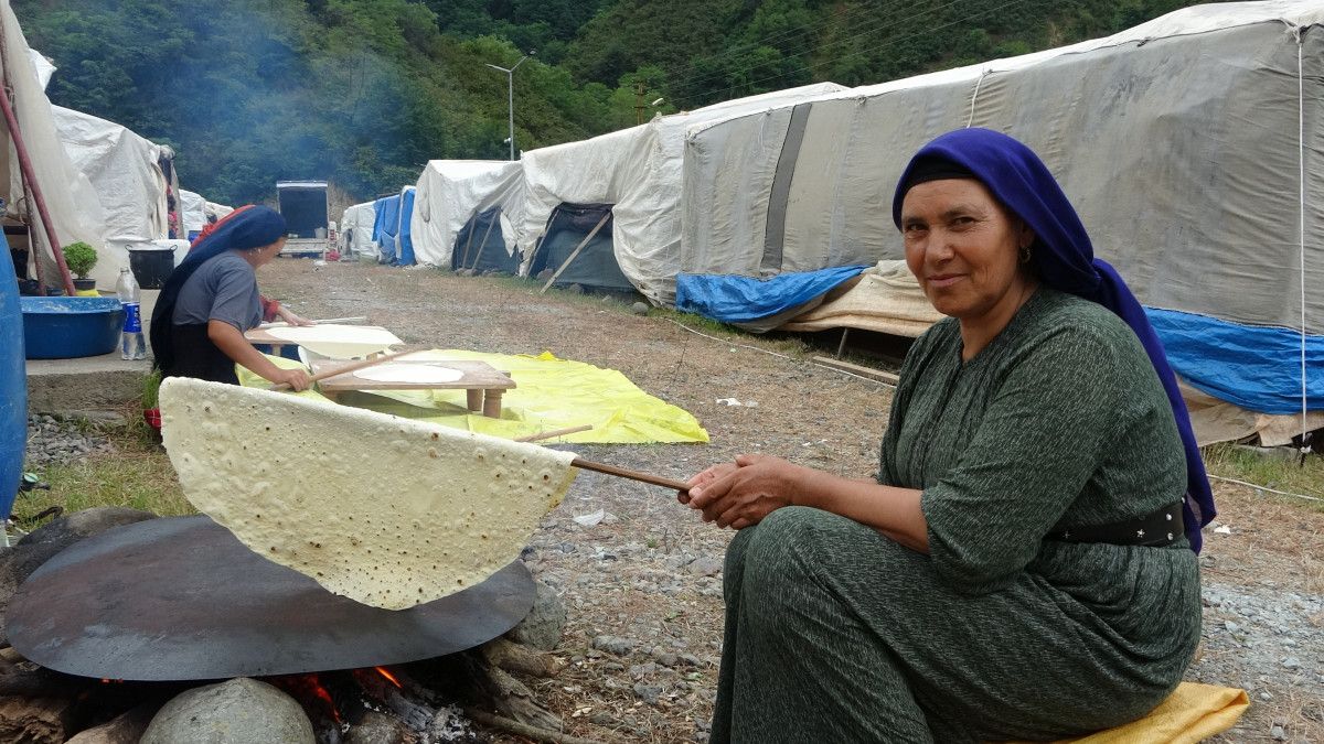 Şanlıurfa’dan gelen Ayşe Kırmızıgül ise, “Buraya fındık toplamak için ailemizle beraber geldik. Şu anda ekmeklerimizi hazırlıyoruz. Hazırlıklar tamamlanınca fındık toplayacağız. Fındık az ama hayırlısı olsun” diye konuştu.