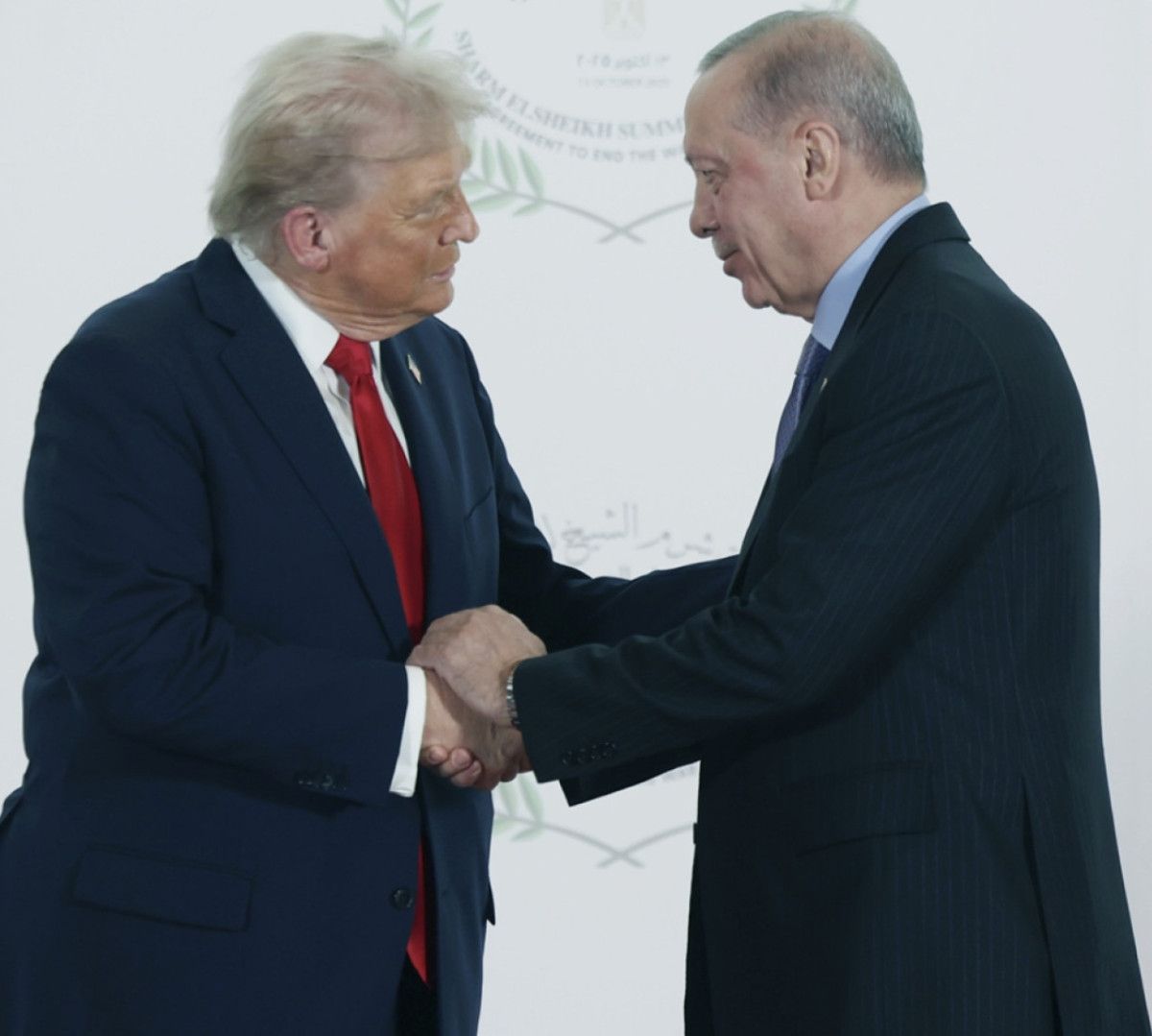 ABD Başkanı Donald Trump, Mısır’da düzenlenen Şarm el-Şeyh Barış Zirvesi’nde Katar Emiri Şeyh Temim bin Hamed Al Sani, Mısır Cumhurbaşkanı Abdulfettah es-Sisi ve Türkiye Cumhuriyeti Cumhurbaşkanı Recep Tayyip Erdoğan ile kurulan masada beraber oturdu.