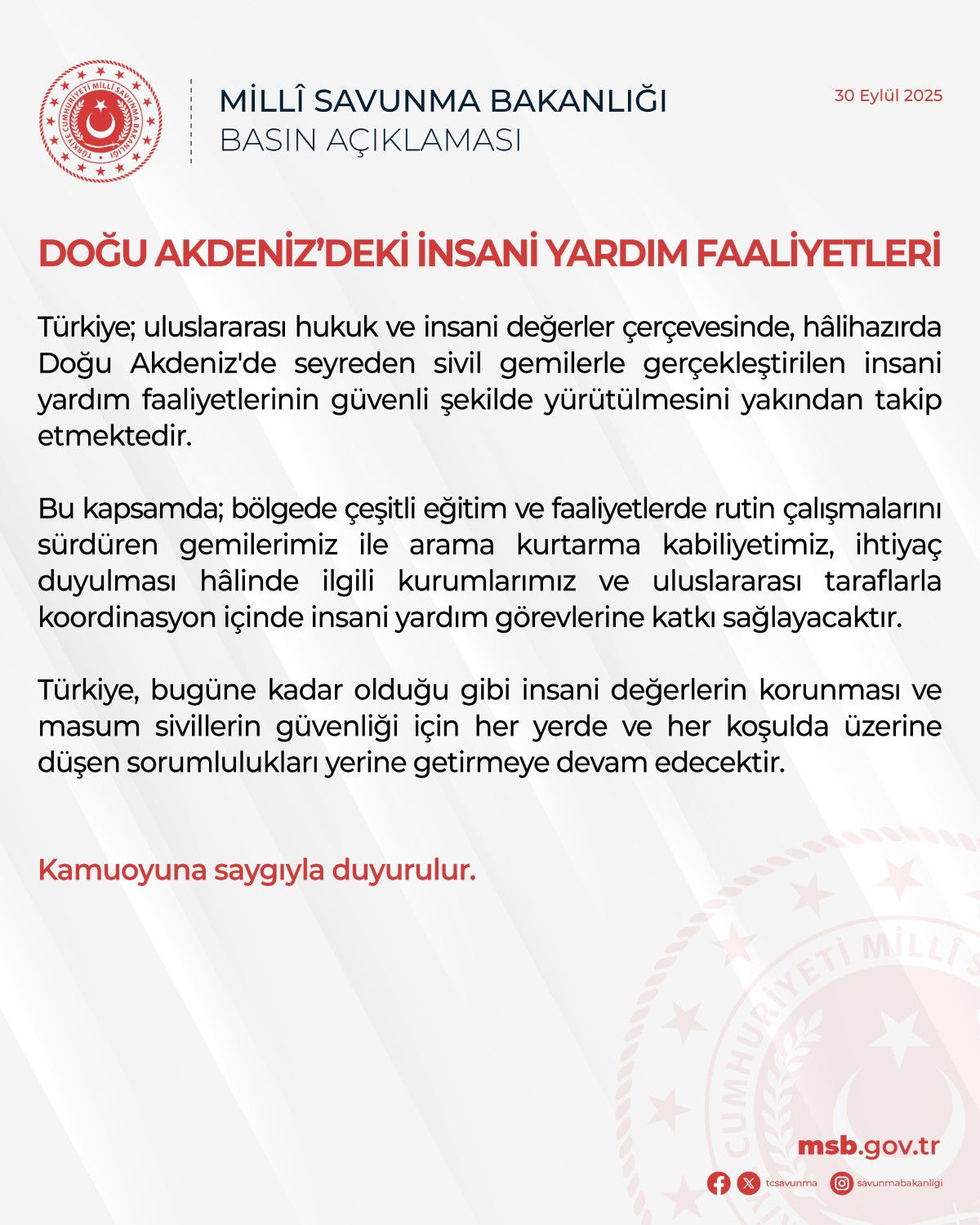 Doğu Akdenizde’ki insani yardım faaliyetlerine ilişkin Milli Savunma Bakanlığı’ndan açıklama yapıldı.