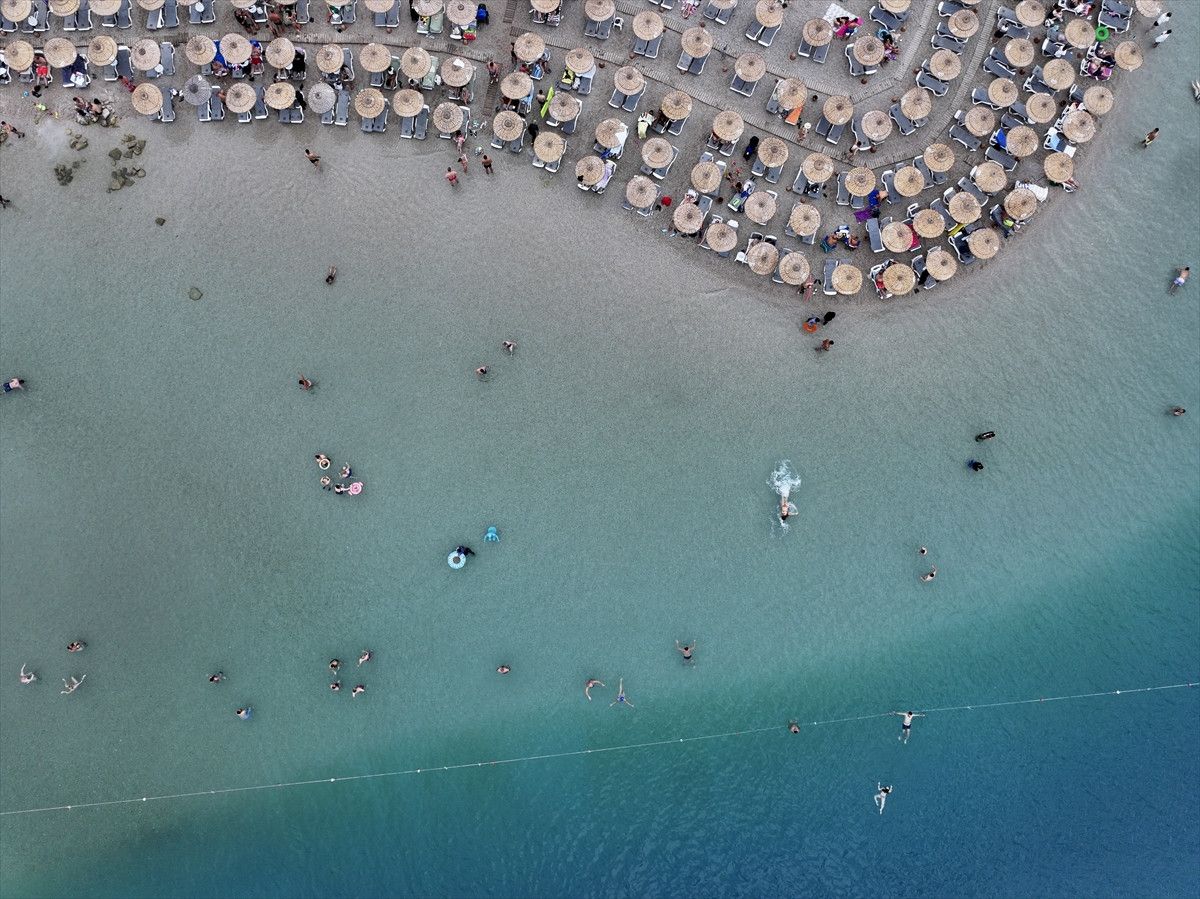 Sıcaktan bunalan kent sakinleri ile yerli ve yabancı turistler, Ölüdeniz Mahallesi’ndeki Kumburnu ile Belcekız plajlarında yoğunluğa neden oldu.