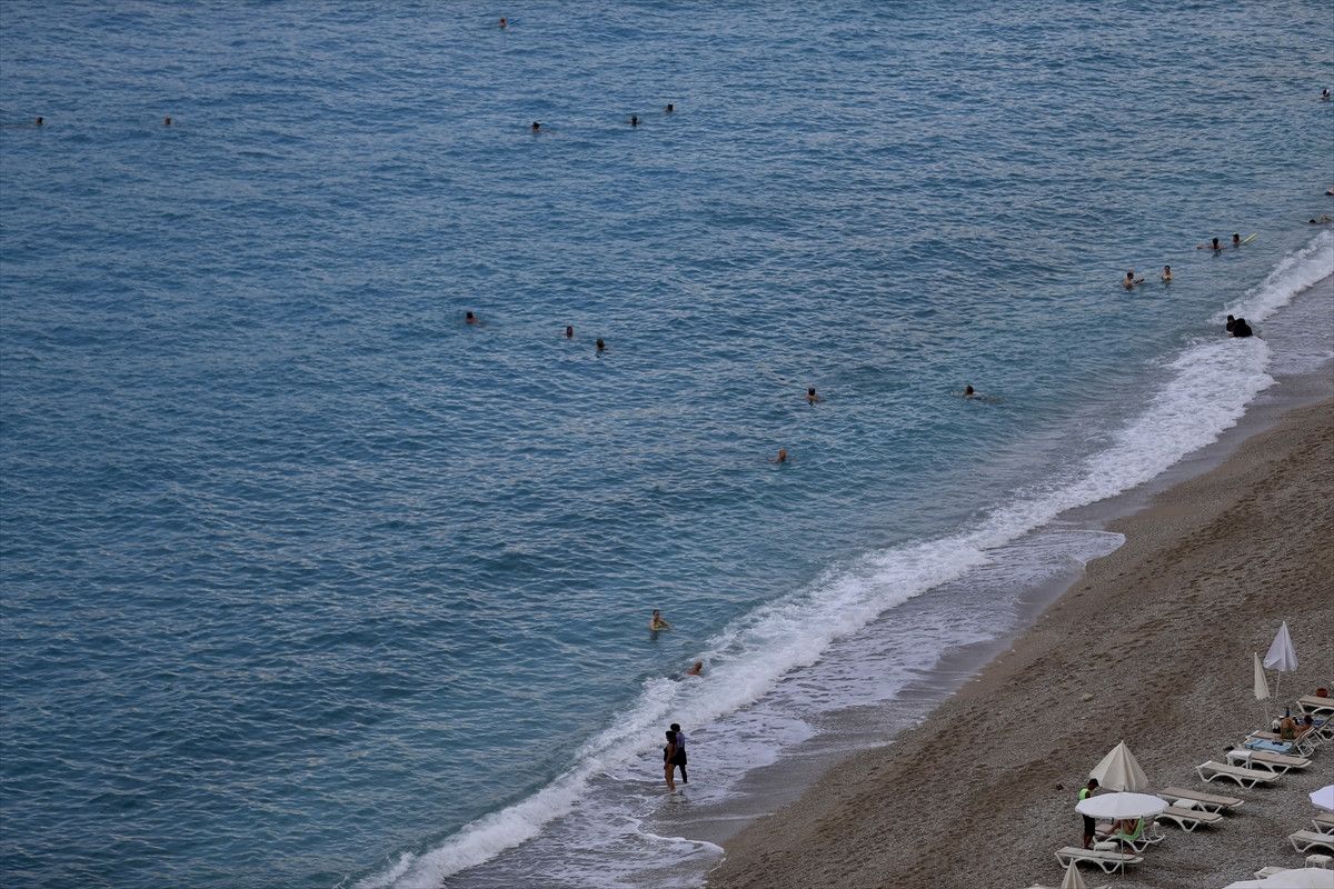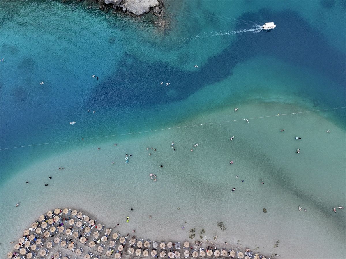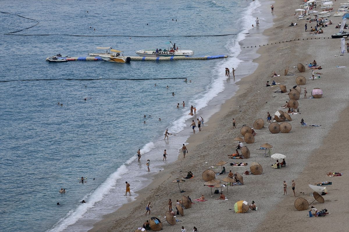 Bazı turistler ve vatandaşlar denize girerek yüzmenin keyfini çıkardı, bazıları ise kumsalda güneşlenmeyi tercih etti.