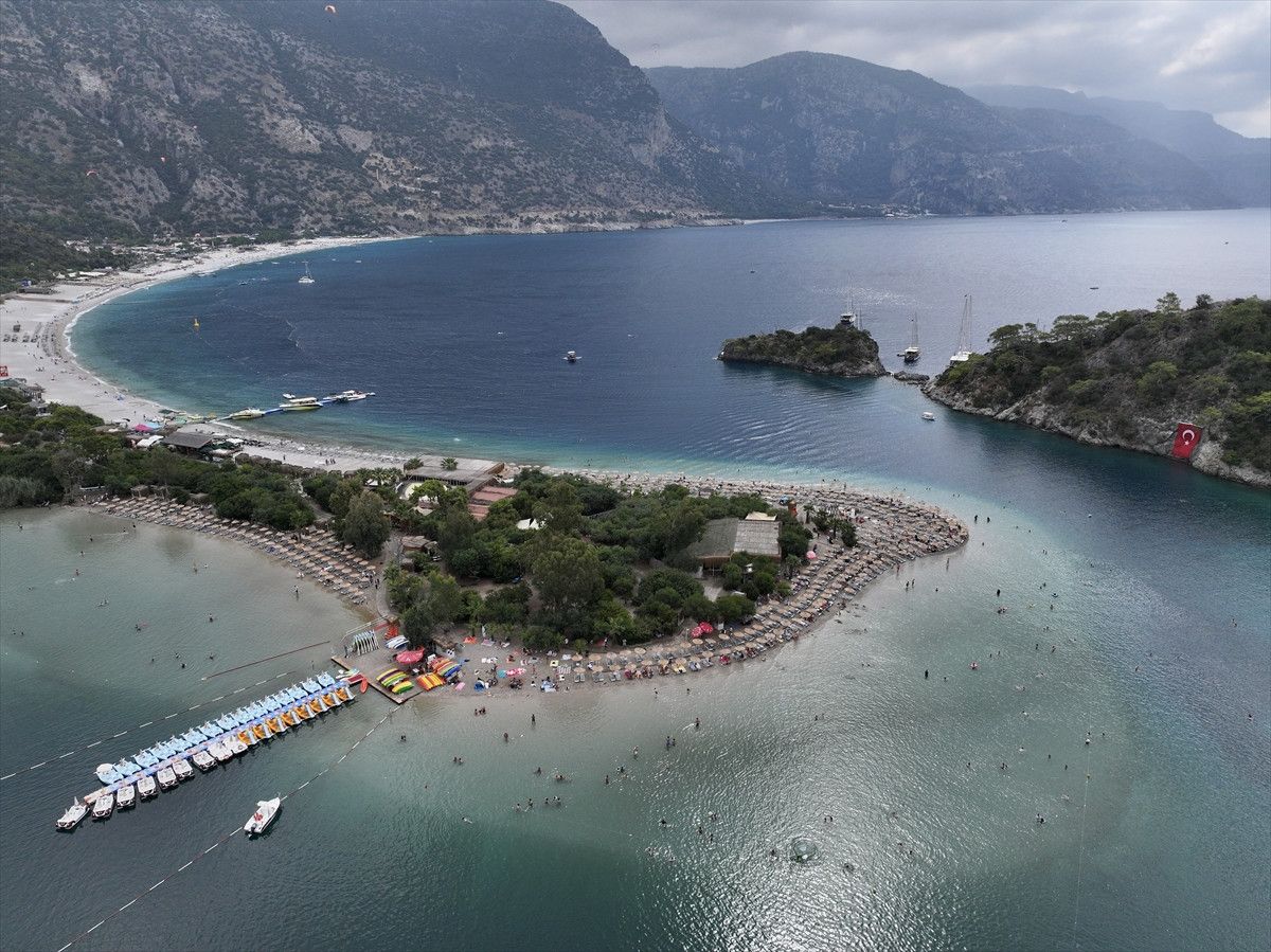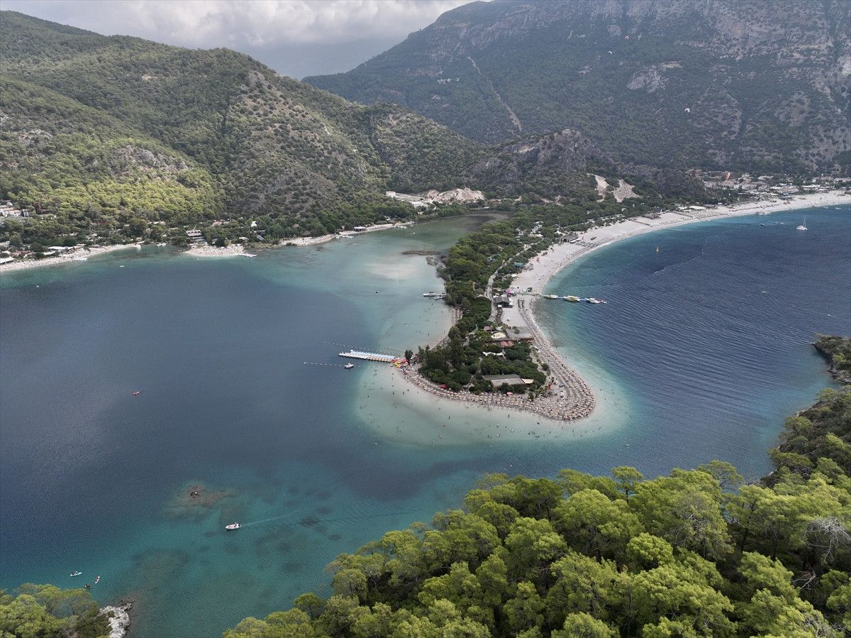 Babadağ’daki pistlerden pilotlar eşliğinde yamaç paraşütü uçuşu yapan macera tutkunları, Ölüdeniz’in eşsiz manzarasını kuş bakışı izledi.