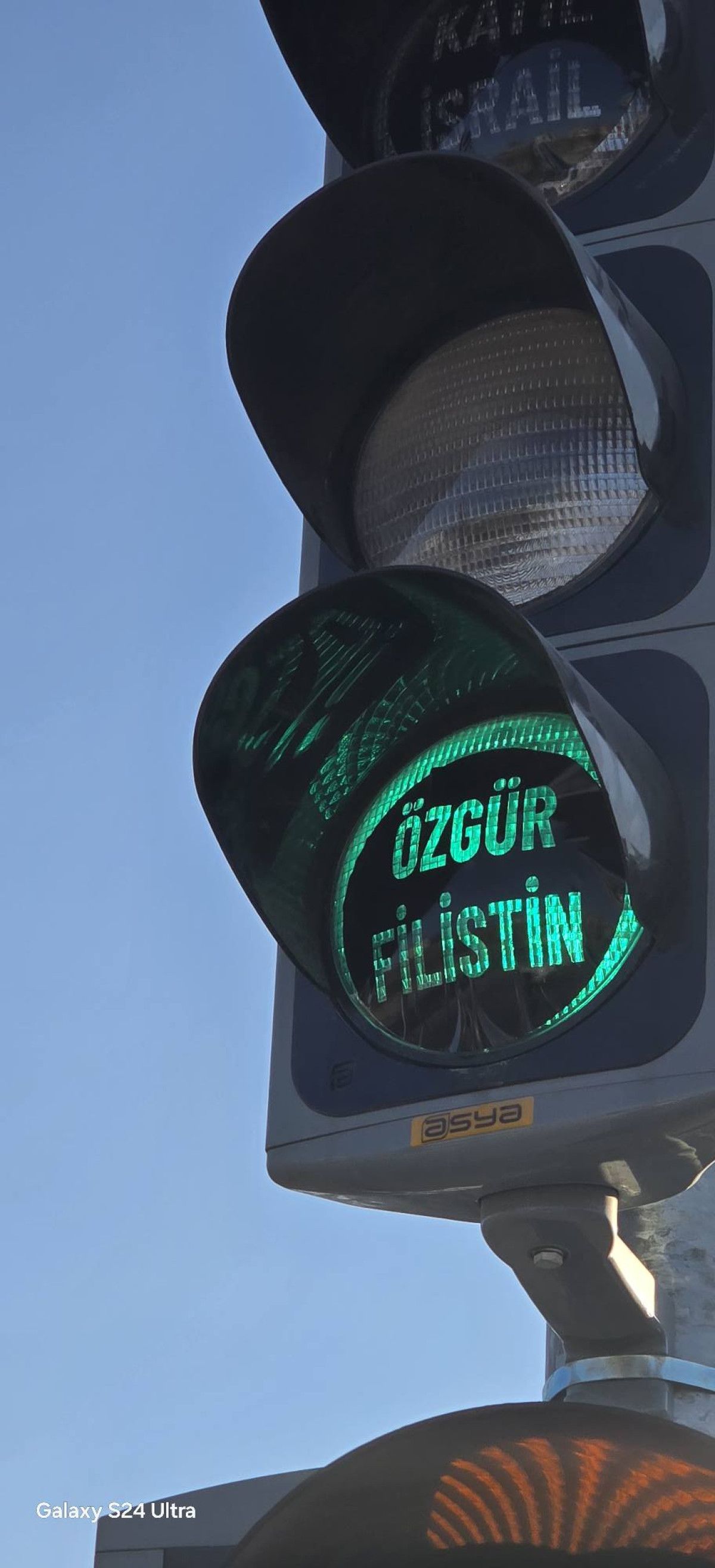 YEŞİL IŞIKLARA “ÖZGÜR FİLİSTİN” YAZISI EKLENDİ