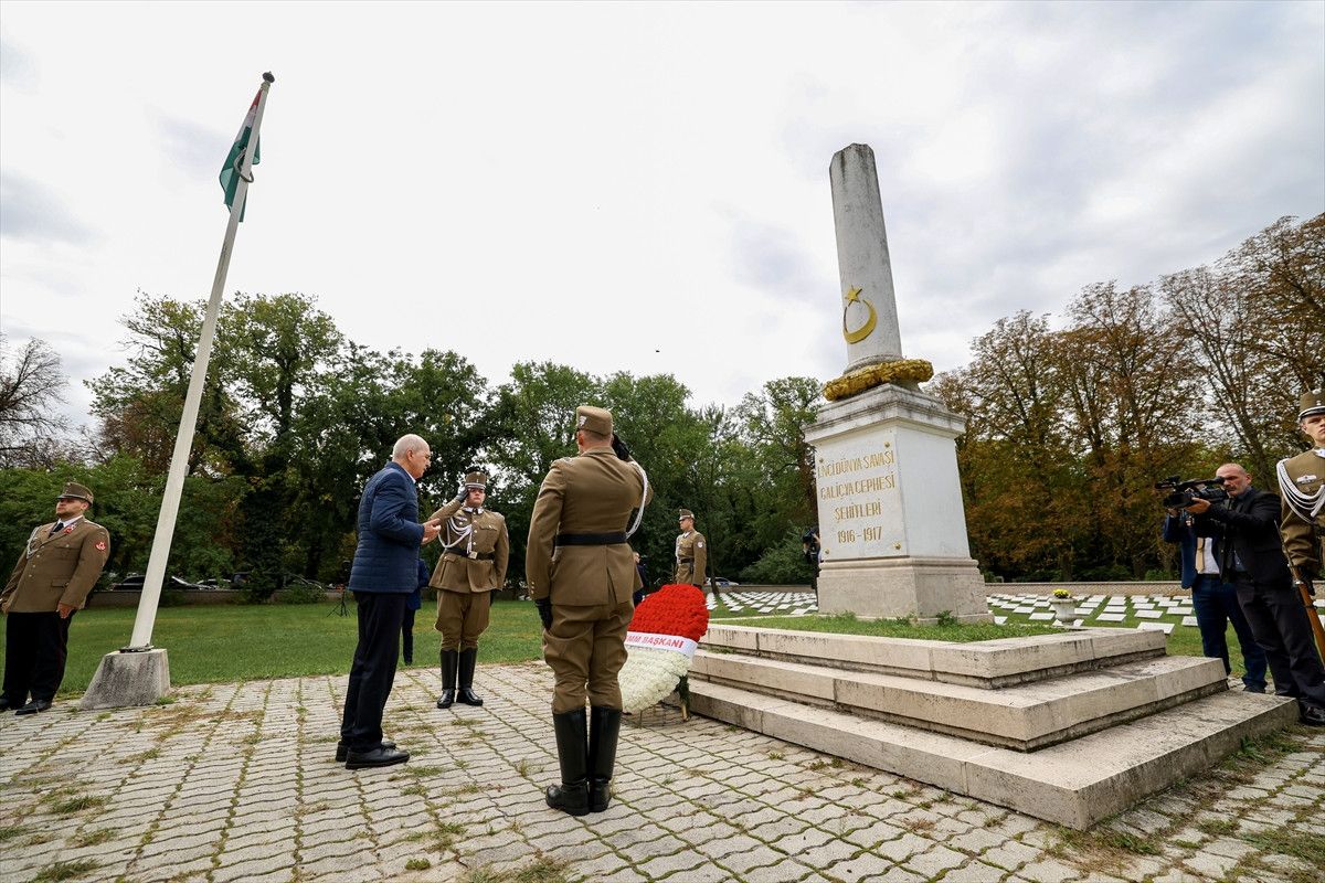 Kurtulmuş, burada Türk ve Macar milli marşlarının okunmasının ardından şehitlik anıtına, üzerinde “TBMM Başkanı” yazılı kırmızı beyaz karanfillerden oluşan çelenk bırakarak dua etti.