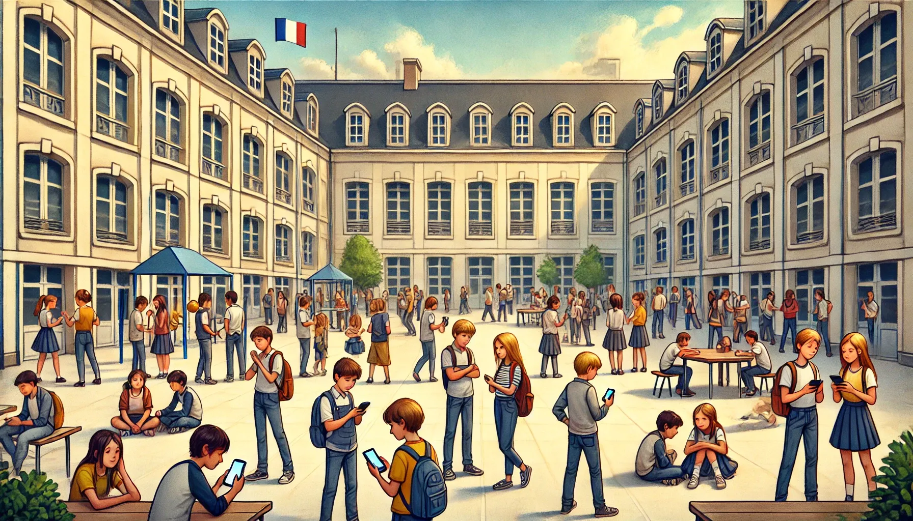 Fransa, 2018 yılında ortaokullarda telefon kullanımını yasaklamıştı. Mevcut kurallara göre, telefonlar okul çantasında kapalı halde bulundurulmalı ve hiçbir okul alanında kullanılmamalı. Bu düzenleme sayesinde, öğrenciler arasında daha fazla sosyal etkileşim, artan fiziksel aktivite, zorbalıkta azalma ve konsantrasyon iyileşmesi gözlemlendi. Ancak bazı öğrenciler, tuvalette gizlice video izledikleri de rapor edilmişti.