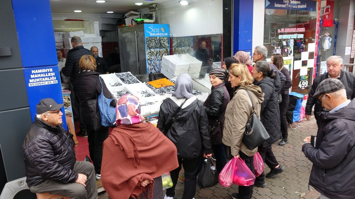 Hamsinin ucuzlamasıyla tezgahlar önünde uzun kuyruklar oluştu.