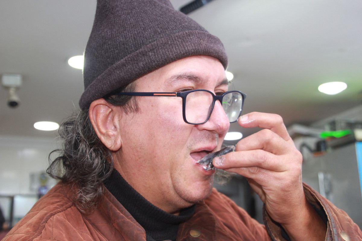 Hamsi fiyatlarının düşmesinden büyük mutluluk duyduğunu belirten Enver Sağlam adlı vatandaş, “Ara sıra çiğ hamsi yerim ama bu kez sevinçten tezgahtan çiğ aldım.