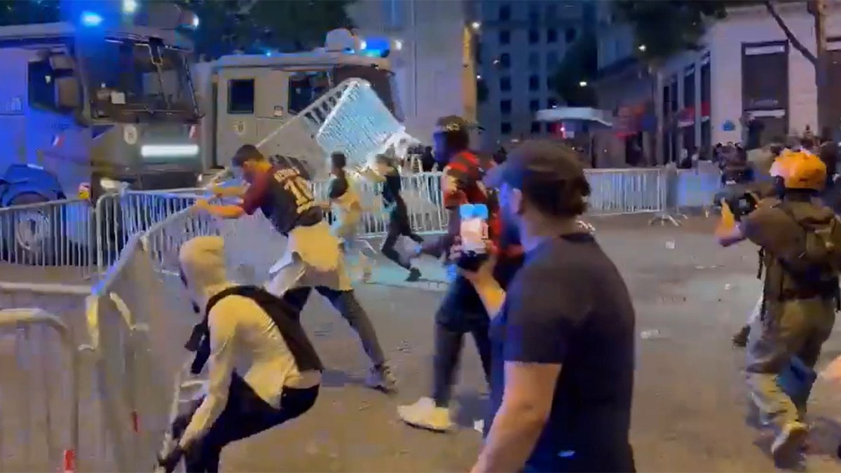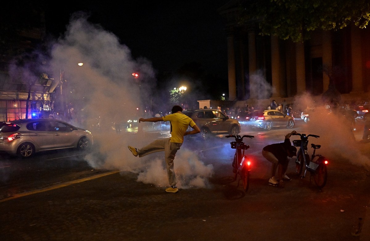 Sosyal medyaya yansıyan görüntülerde Parc des Princes stadının etrafında ve Şanzelize Caddesi’nde polisin taraftarlardan oluşan kalabalığı dağıtmak için biber gazı ve copla müdahalede bulunduğu görüldü.