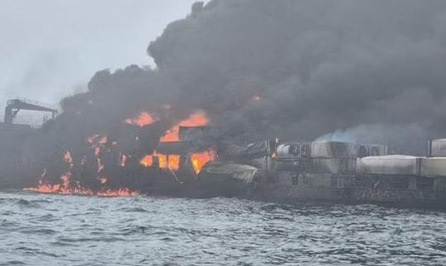 Çarpışmanın ardından her iki gemide de yangın çıktı ve bölgeden yükselen yoğun siyah dumanlar kilometrelerce uzaktan görülebildi. Jet yakıtı taşıdığı belirtilen tankerdeki yangın, büyük bir çevre felaketine yol açma riski taşıyor.