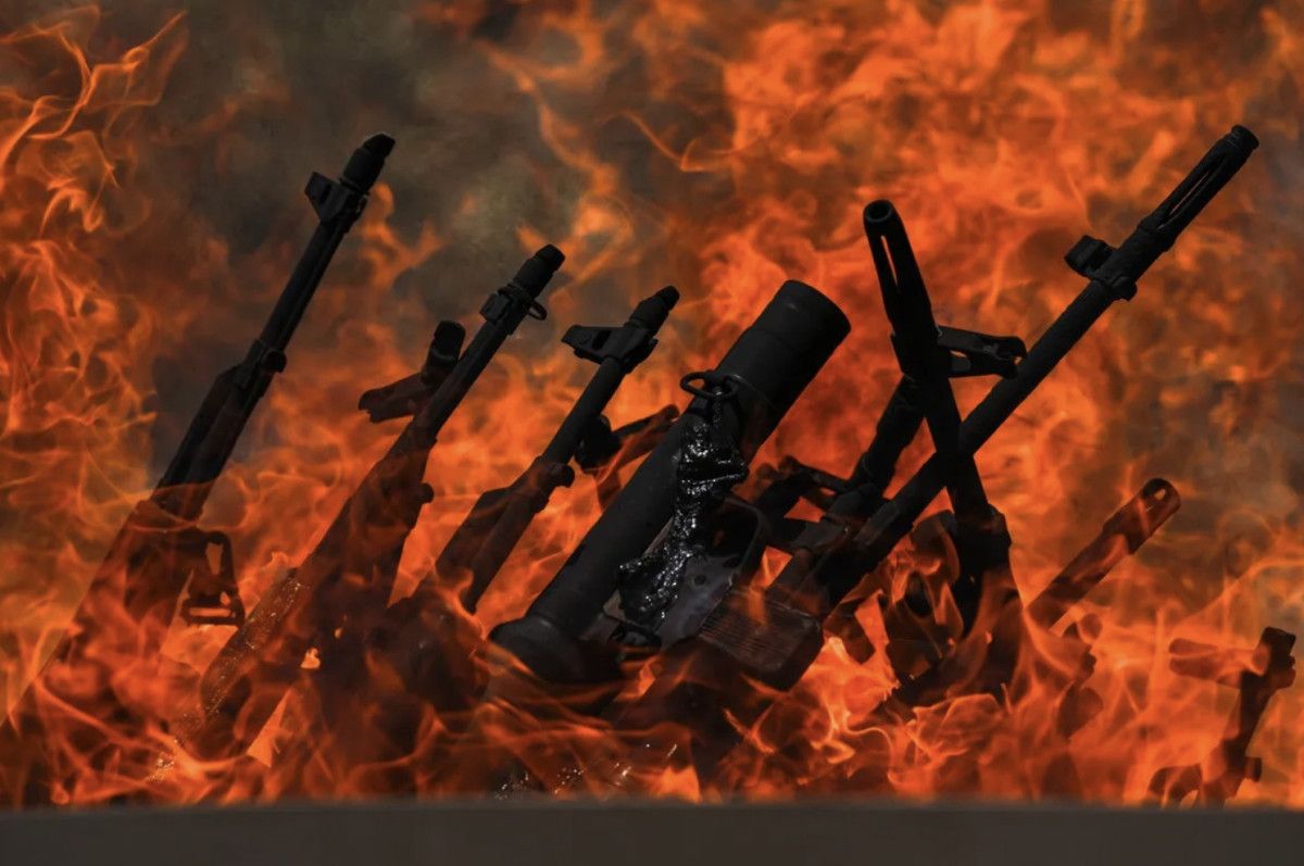 BÜYÜK BİR KAZANA ATILAN SİLAHLAR YAKILDI