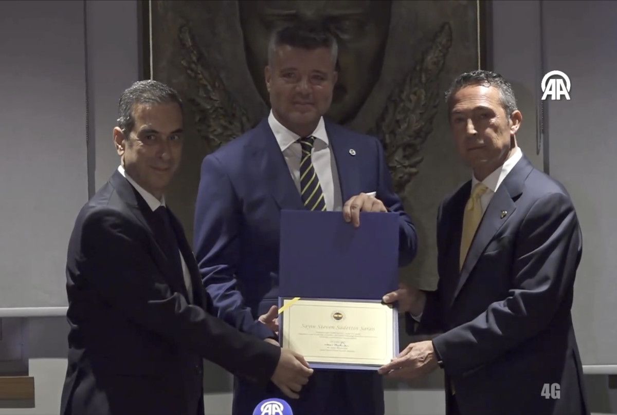 Törende Fenerbahçe’nin yeni başkanı Steven Sadettin Saran, mazbatasını eski Başkan Ali Koç’un elinden aldı.