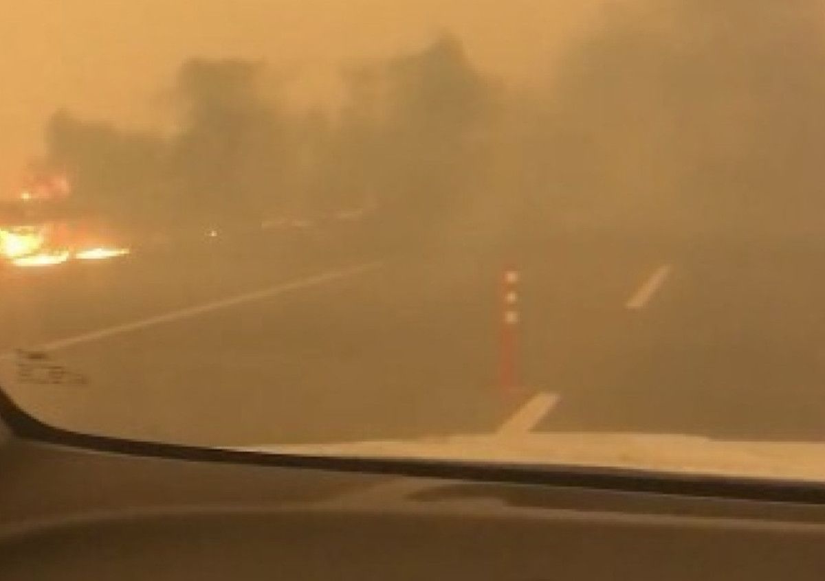 Görüntülerde alevlerin yola kadar indiği ve dumandan görüş mesafesinin neredeyse sıfıra düştüğü görülürken, araçtaki bir kişinin “Ağabey çıkmamız lazım, ortada kaldık. Allah’ım, sen yardım et, Ya Rabbim. Allah’ım sen büyüksün.” şeklindeki paniği kayda yansıyor.