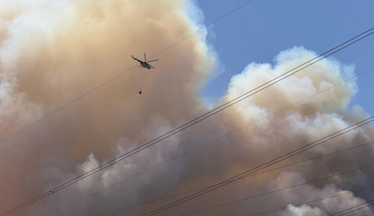 Dik ve eğimli arazide alevlerle mücadelenin zor olması nedeniyle bölgeye yangın söndürme helikopteri de yönlendirildi.