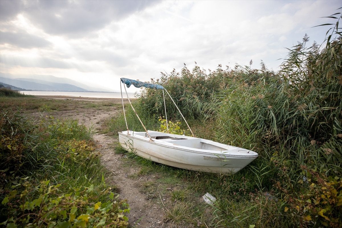 Suyun metrelerce çekildiği gölün kenarındaki iskelelerin büyük bölümü susuz kaldı, göldeki kayıklar tamamen karaya oturdu, toprakta çatlaklar oluştu.
