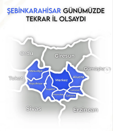 Eğer Şebinkarahisar yeniden il statüsü kazanırsa, çevresindeki bazı ilçeler de ona bağlanabilir. Bu ilçeler arasında Suşehri, Akıncılar, Çamoluk, Gölova, Koyulhisar, Mesudiye ve Alucra yer alıyor.