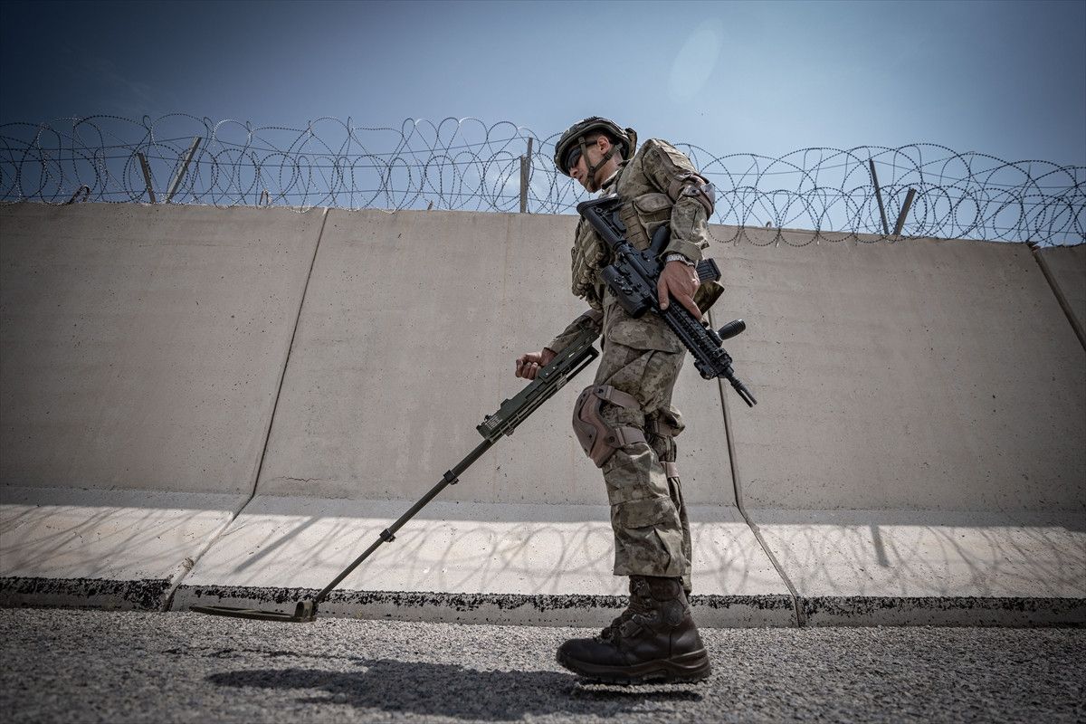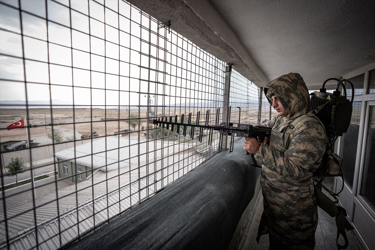 Gece gündüz demeden bir an olsun gözünü sınırından ayırmayan Mehmetçik, sınıra yapılan duvar ve çevresindeki başta gece görüş özellikli kameraların yanı sıra her türlü titreşim hareketlerini tespit edebilen akustik sistemler vasıtasıyla yasa dışı olayları engelliyor.