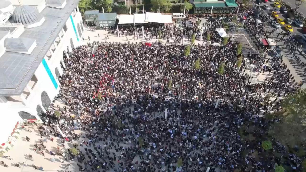 Herkesin aynı acı ve hüznü hissettiği o kalabalık, havadan görüntülendi.