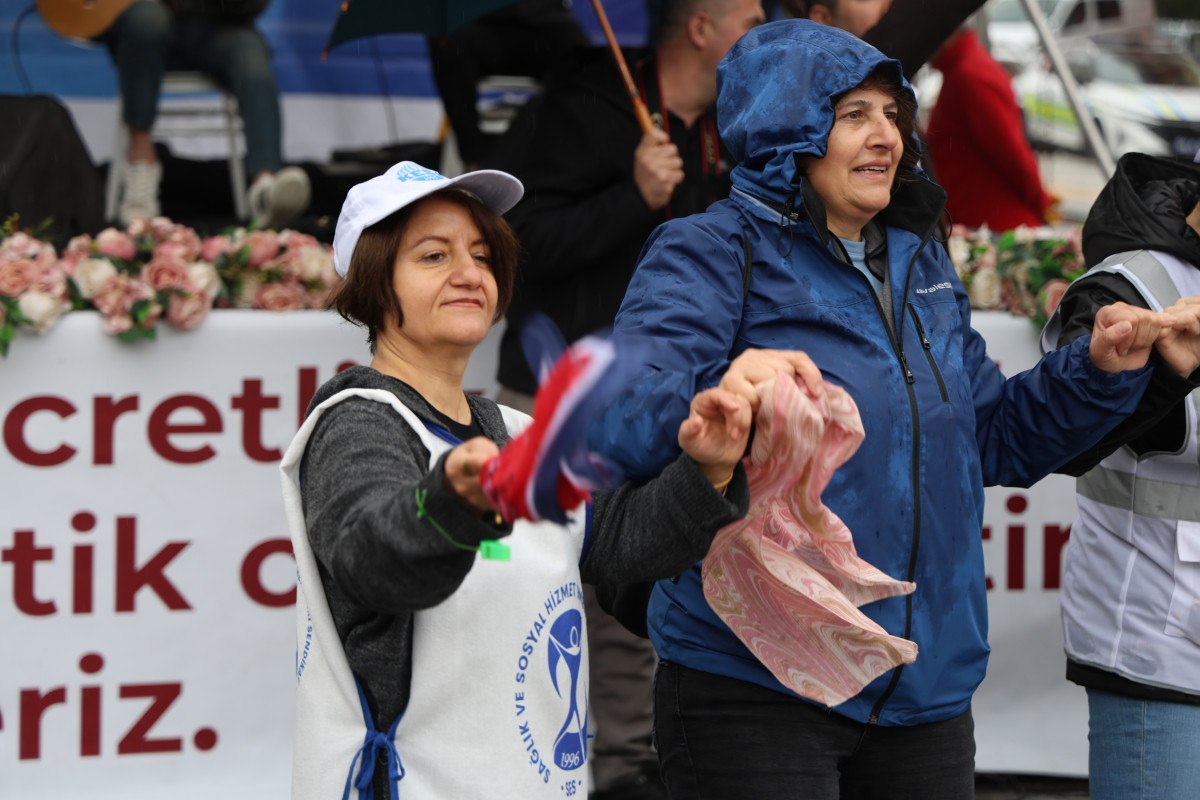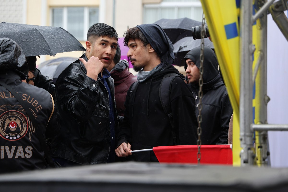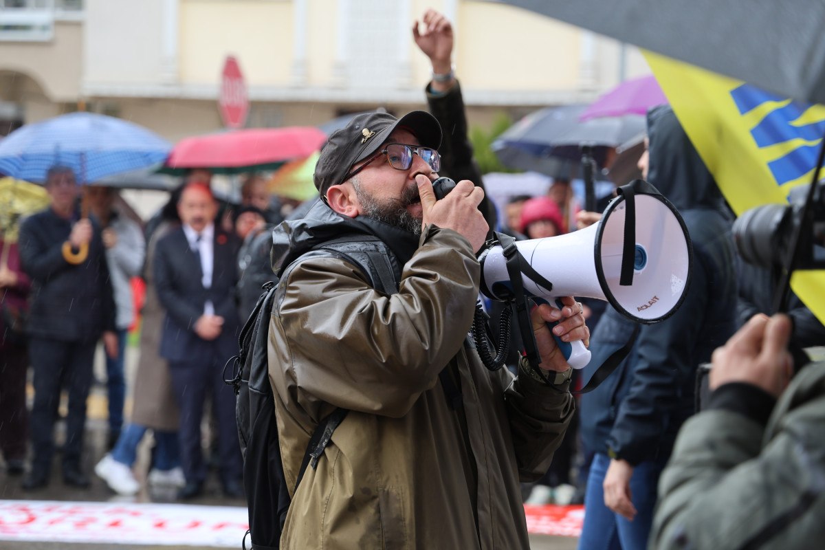 Emekçinin, işçinin bu günü, bu tip insanlar yüzünden leke yiyor. Ben yağmurun altında işçinin alın terini savunmak için geldim. Burası Türkiye Cumhuriyeti toprakları, bu topraklarda Türkiye Cumhuriyeti’nin adını değiştirecek adamın alnını karışlarız.” dedi.