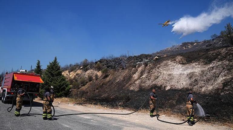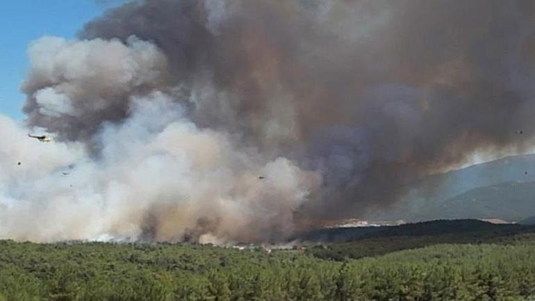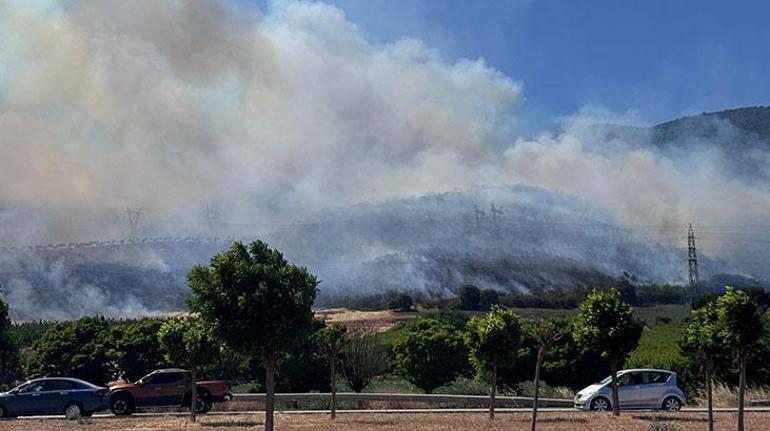 İhbar üzerine bölge İzmir Orman Bölge Müdürlüğüne ait 6 uçak, 5 helikopter, 13 arazöz, 6 su ikmal ve 3 dozer sevk edildi.