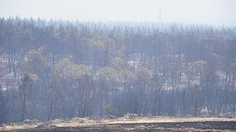 Tekirdağ’ın Şarköy ilçesinde ormanlık alanda çıkan yangın söndürülmeye çalışılıyor.