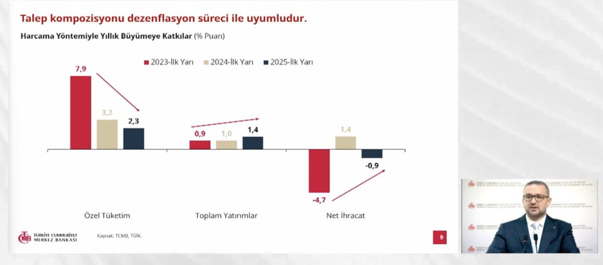 Karahan, enflasyon tahminlerini; bir önceki raporda 2025 yıl sonu için yüzde 24, 2026 yılı sonu için yüzde 12, 2027 yılı sonu için yüzde 8 ve orta vadede yüzde 5 olarak açıklamıştı.